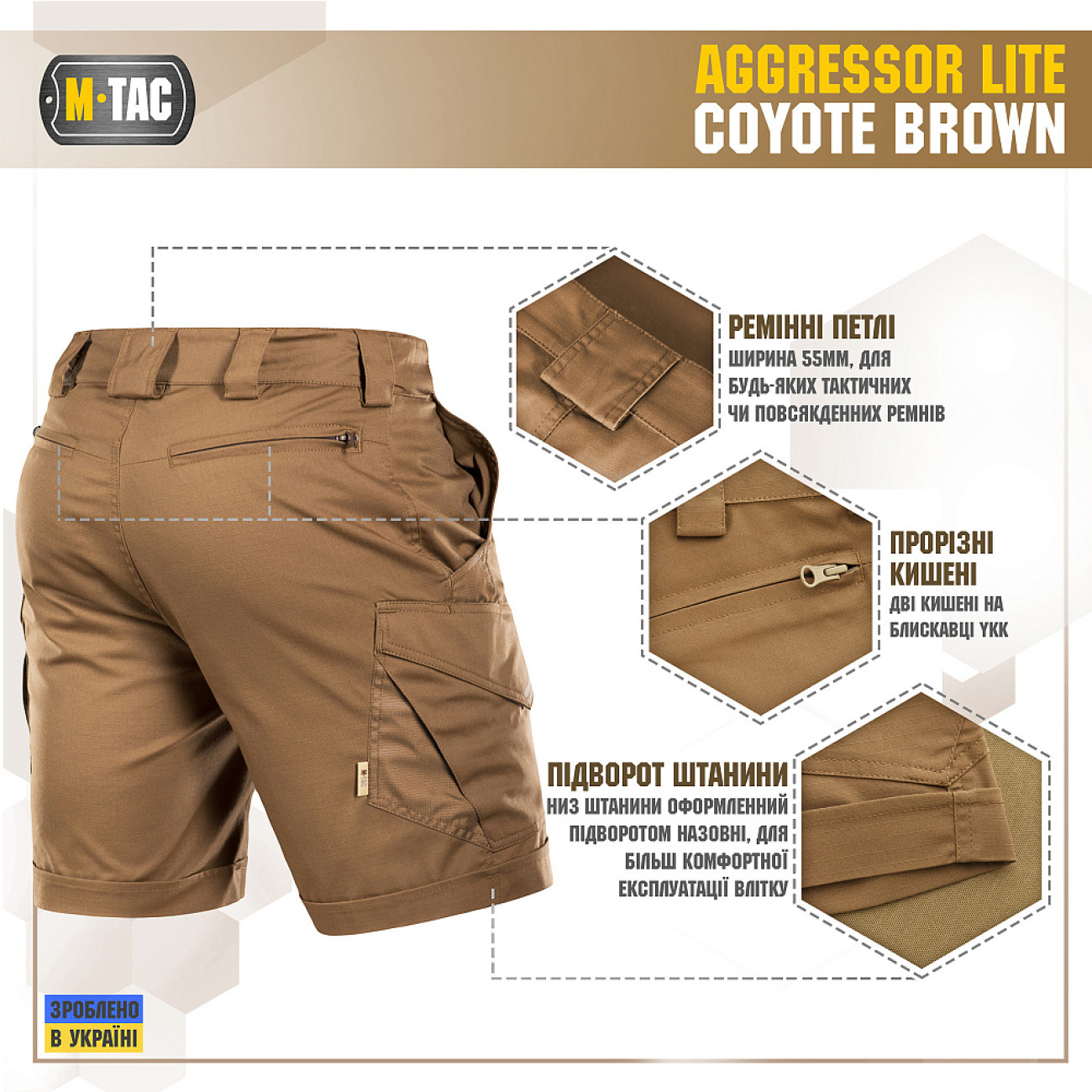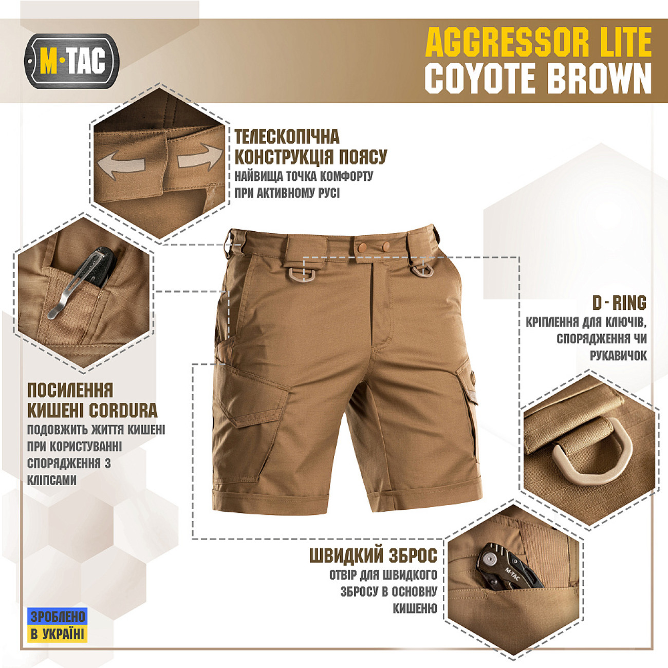 Шорти-карго Aggressor Short – це вкорочена літня версія популярних тактичних штанів Aggressor від M-Tac.