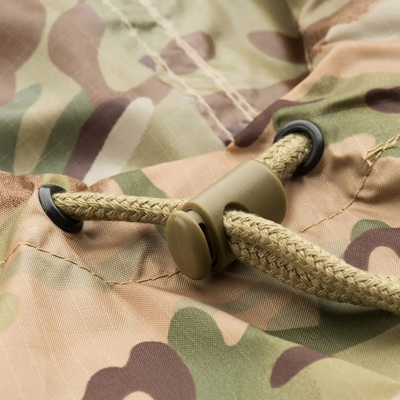 Виріб забезпечує захист від дощу та вітру. Може послугувати тимчасовим наметом або укриттям, тентом для спорядження або робочого місця, ковдрою. Однак це не просто прямокутник з поліаміду. Грамотно розташована фурнітура робить виріб багатофункціональним: