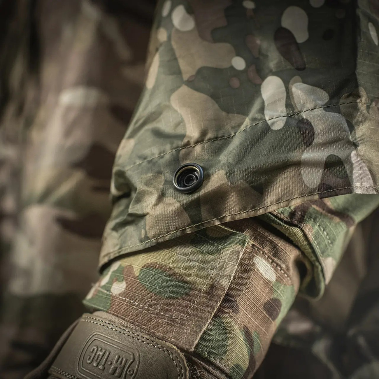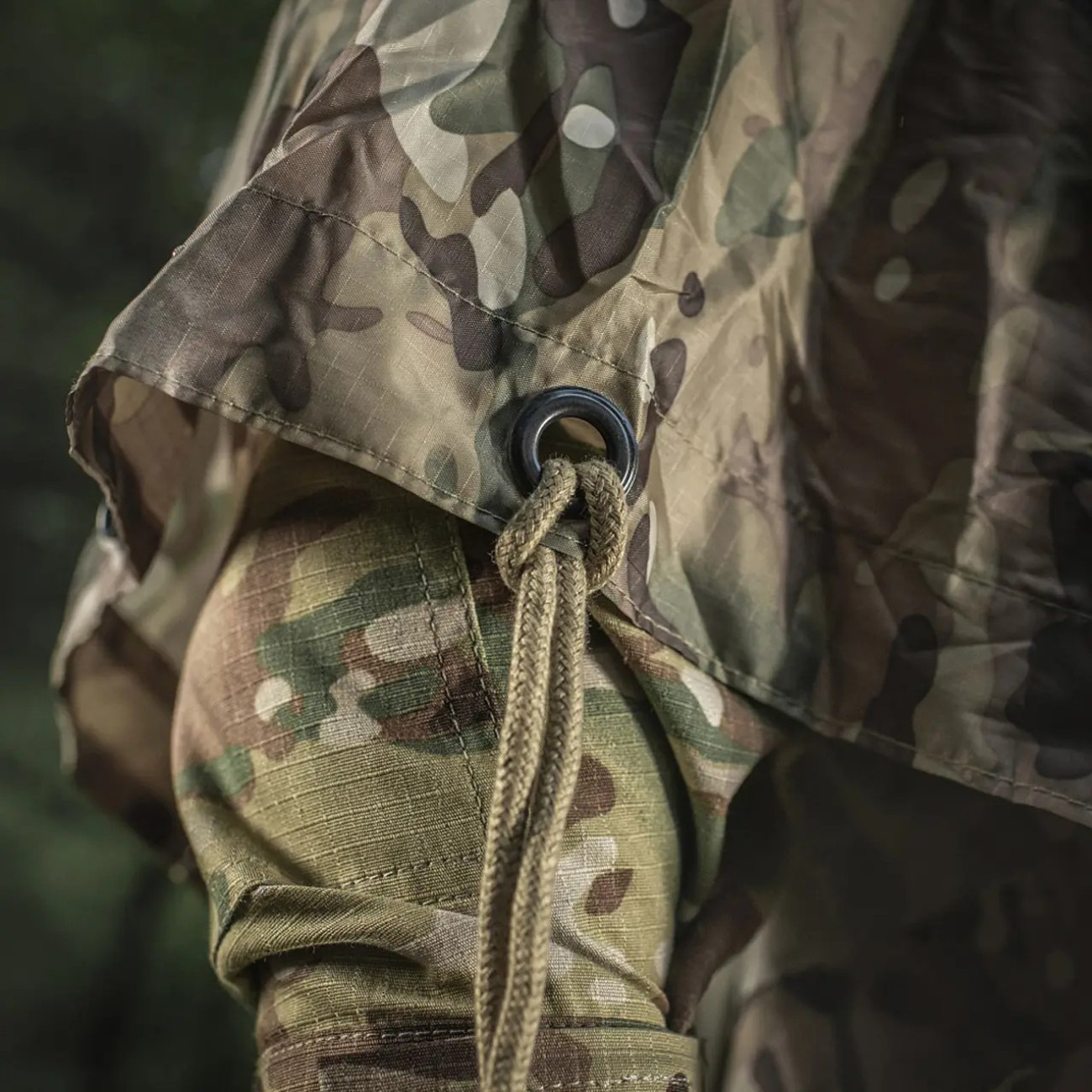 Пончо від бренду M-Tac – це репліка класичної моделі американського армійського пончо, виготовлена з міцного та легкого матеріалу ріп-стоп. Завдяки багатофункціональності воно поєднує у собі функції дощовика, тенту, ковдри, плаща та навіть тимчасового укриття або намету.