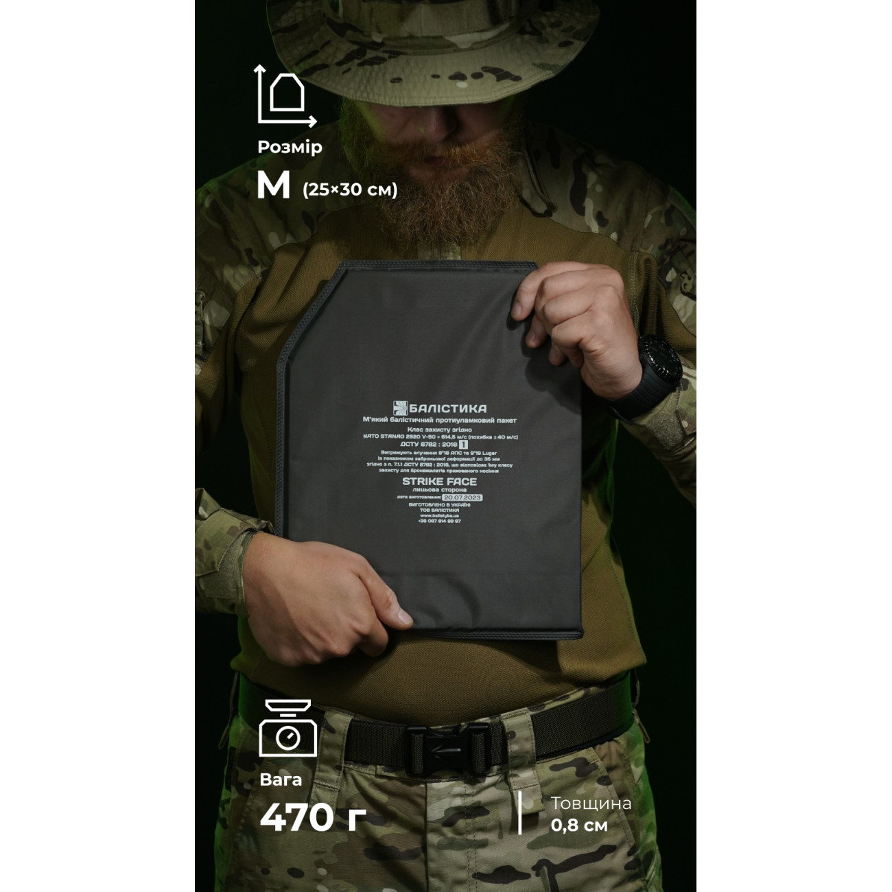 🔹 Вивірена кількість шарів і природна гнучкість матеріалу сприяють тому, що бронепакет адаптується до форми тіла й не заважає у бою.
