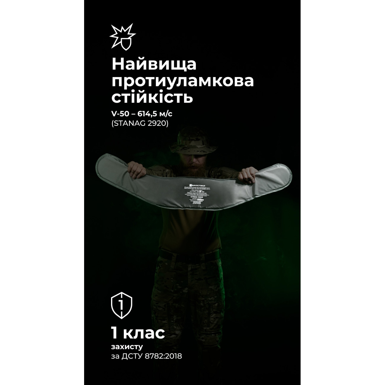 🔹 Вивірена кількість шарів і природна гнучкість матеріалу сприяють тому, що бронепакет адаптується до форми тіла й не заважає у бою.