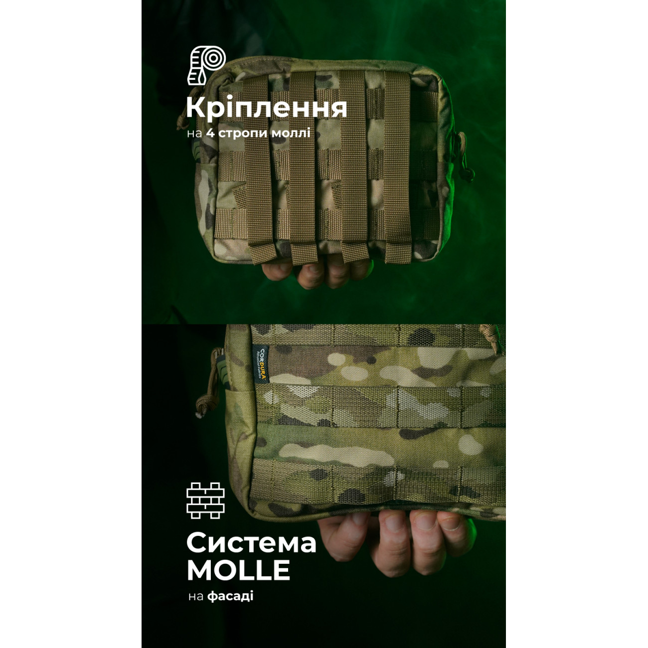 🔹 Кріпиться до спорядження на 4 стропи моллі, займає ширину в 5 чарунок.