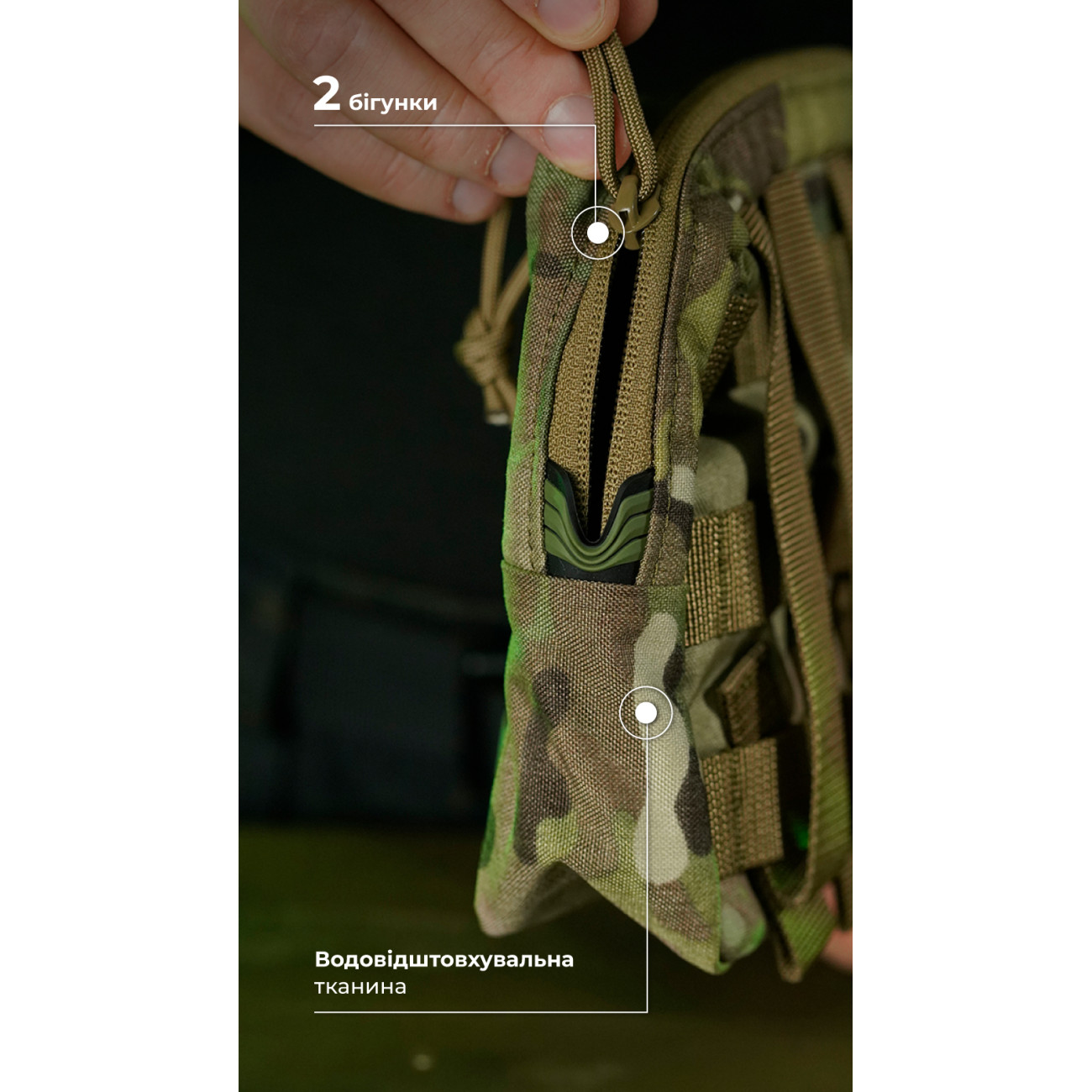 Підсумок об’ємом 1,8 л вмістить боєкомплект розсипом. Також у ньому можна зберігати рукавички, блокнот, карту або сухпай тощо.