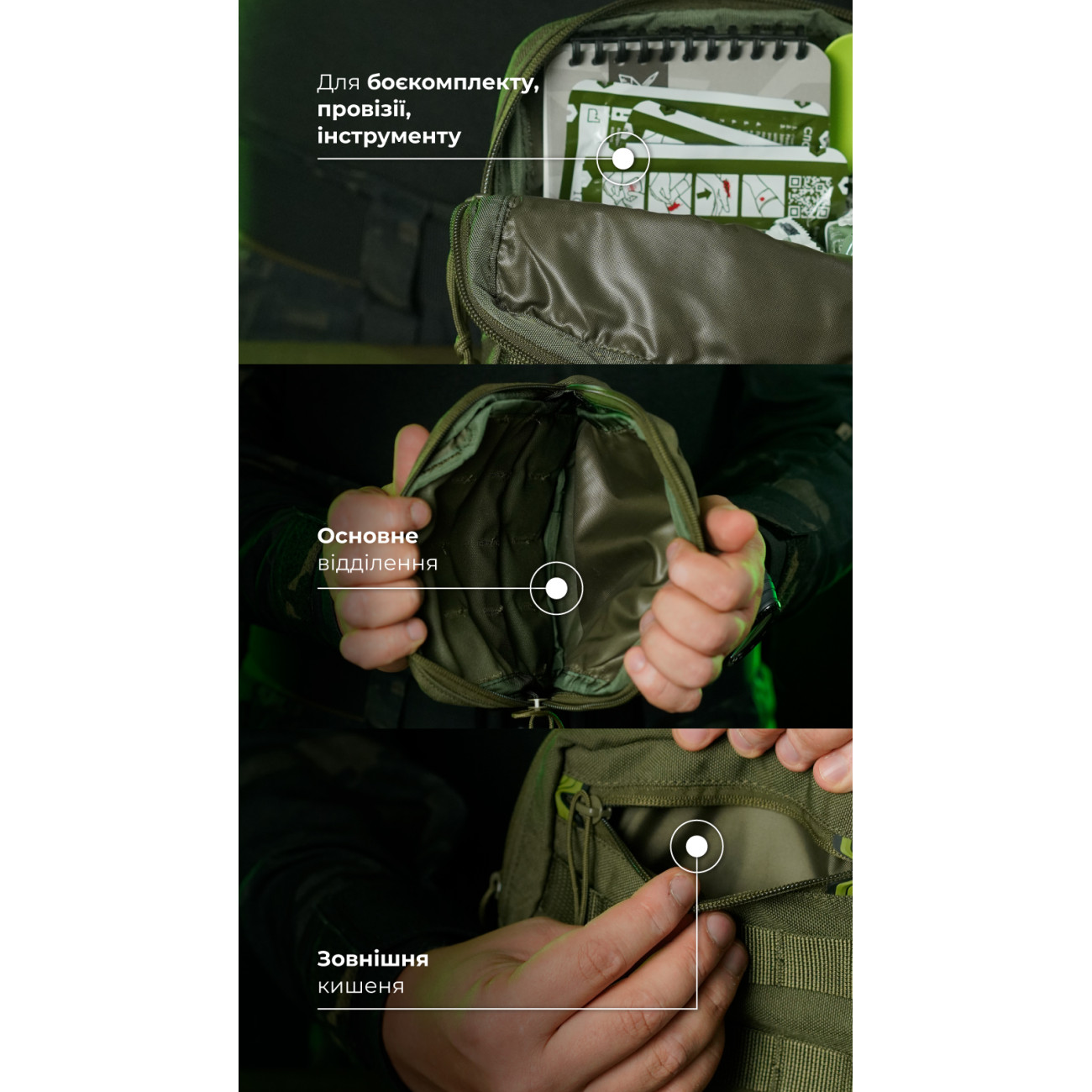 Підсумок об’ємом 1,8 л вмістить боєкомплект розсипом. Також у ньому можна зберігати рукавички, блокнот, карту або сухпай тощо.
