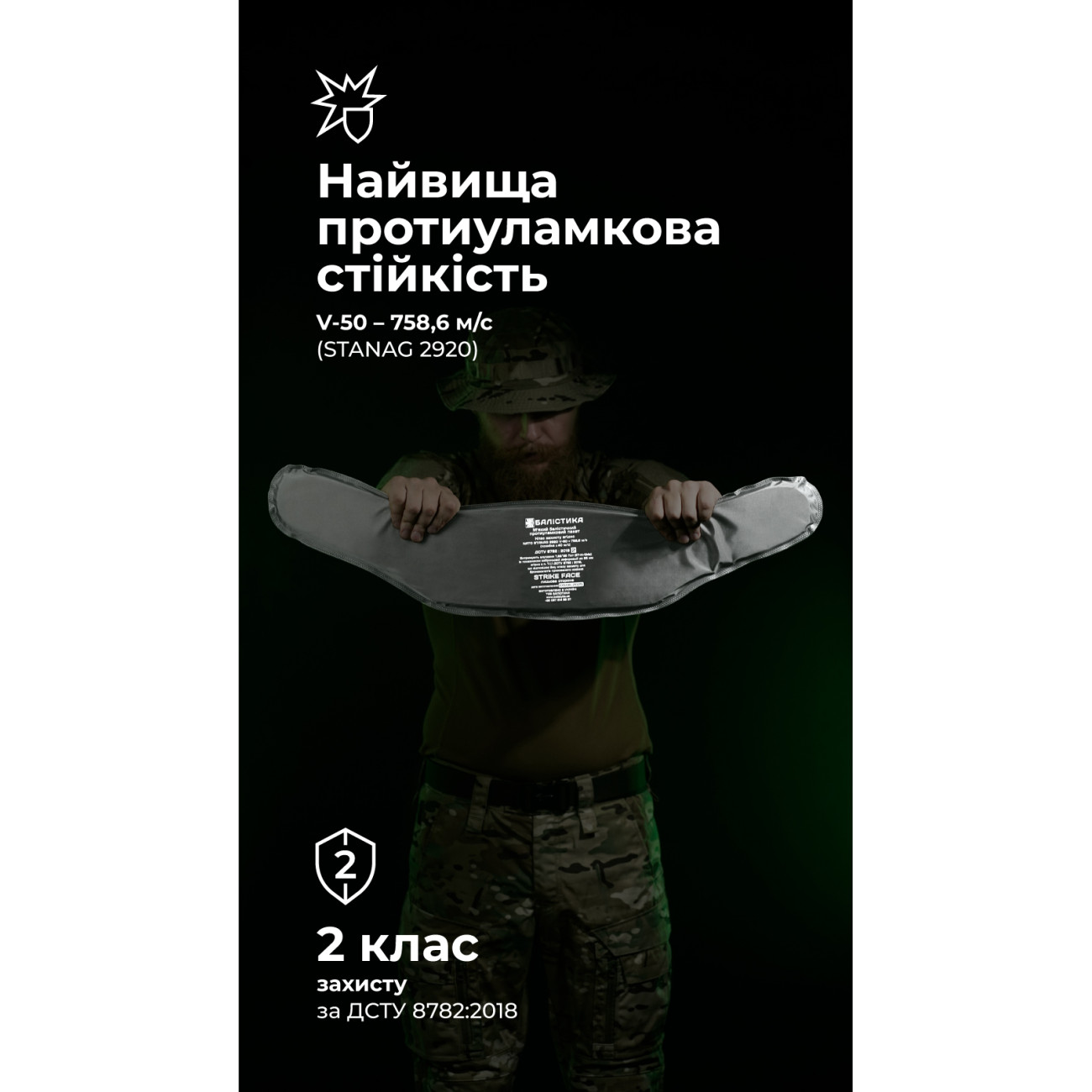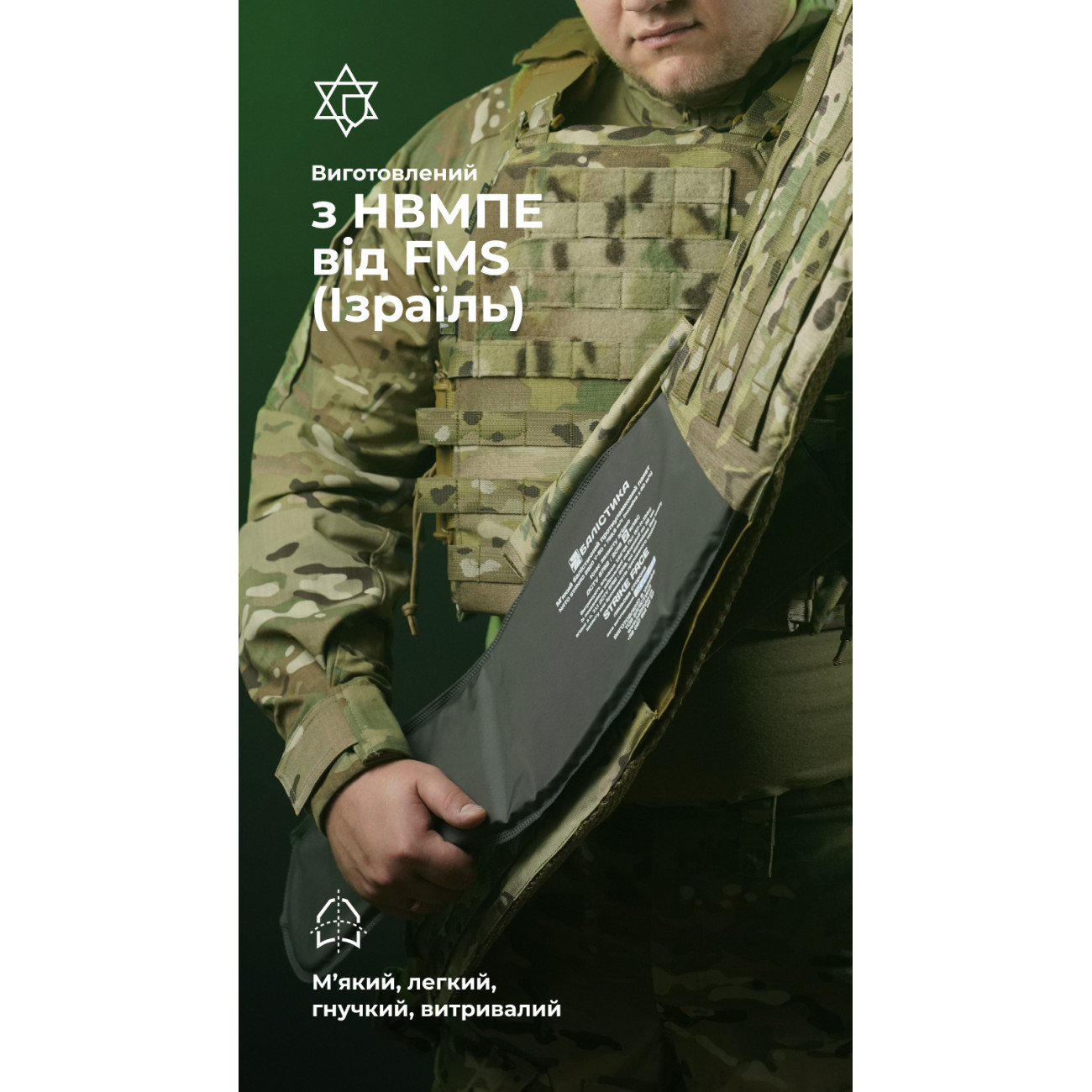 🔹 Вивірена кількість шарів і природна гнучкість матеріалу сприяють тому, що бронепакет адаптується до форми тіла й не заважає у бою.