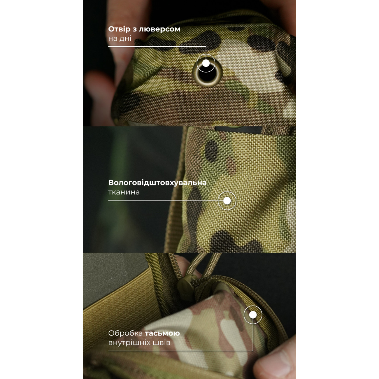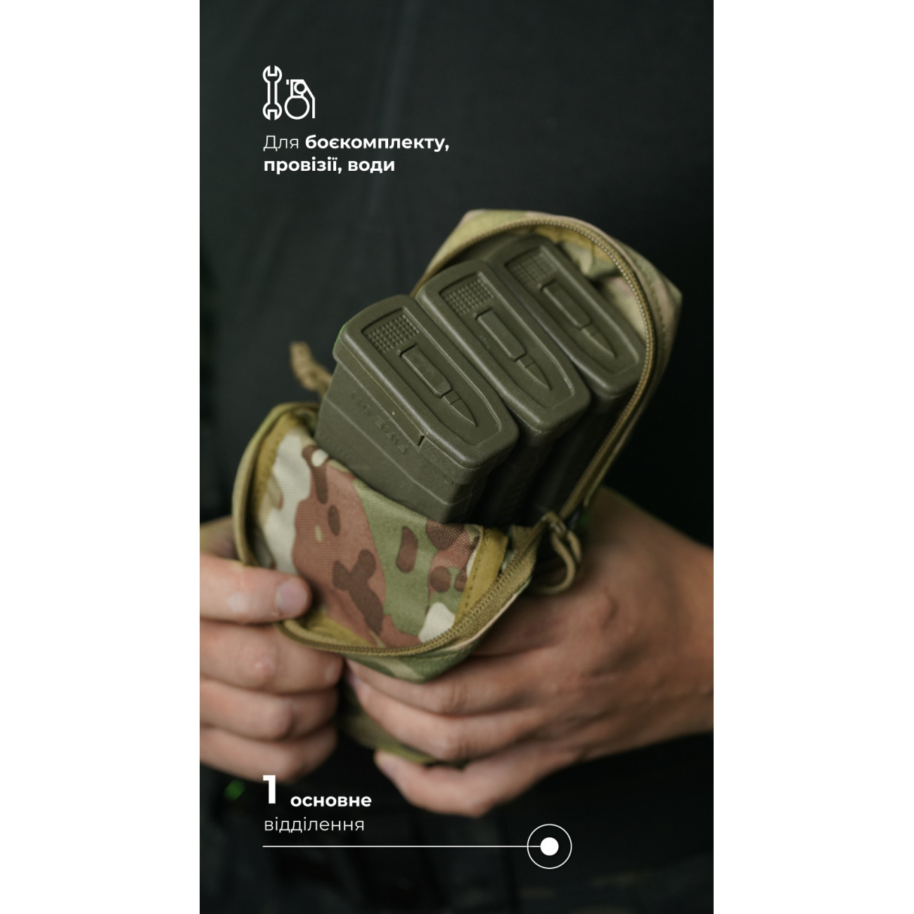 Місткий і витривалий підсумок підходить для організованого зберігання дрібного спорядження, інвентарю, боєприпасів, провізії