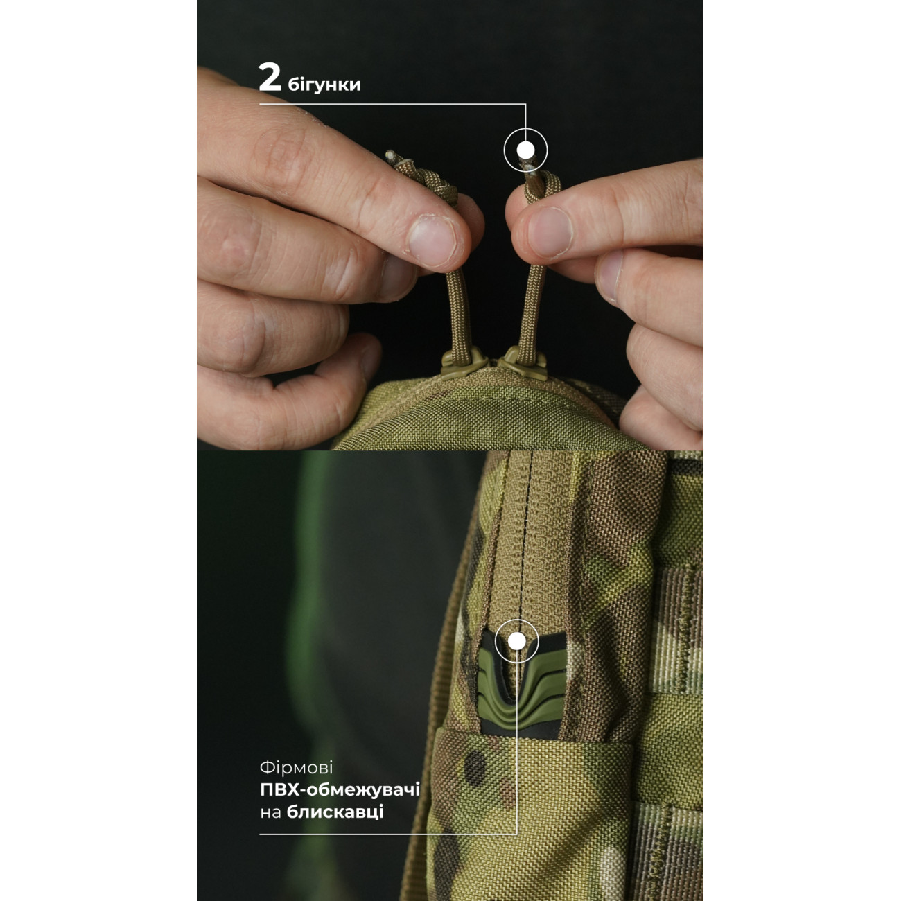 🔹 Кріпиться до спорядження на 2 стропи моллі, займає ширину у 3 чарунки.