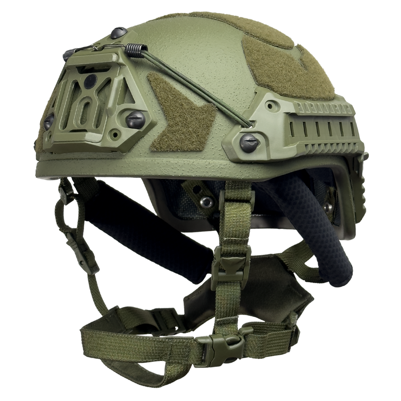 - Має високий виріз (High Cut), що є модифікацією американського шолома ACH (Advanced Combat Helmet).
