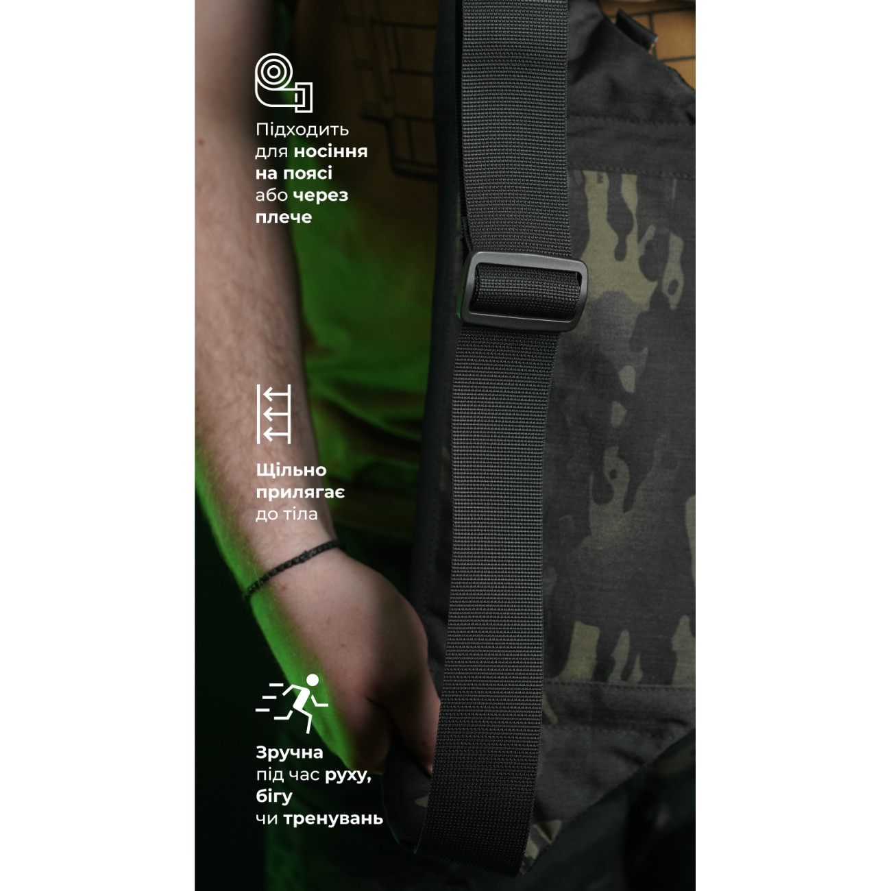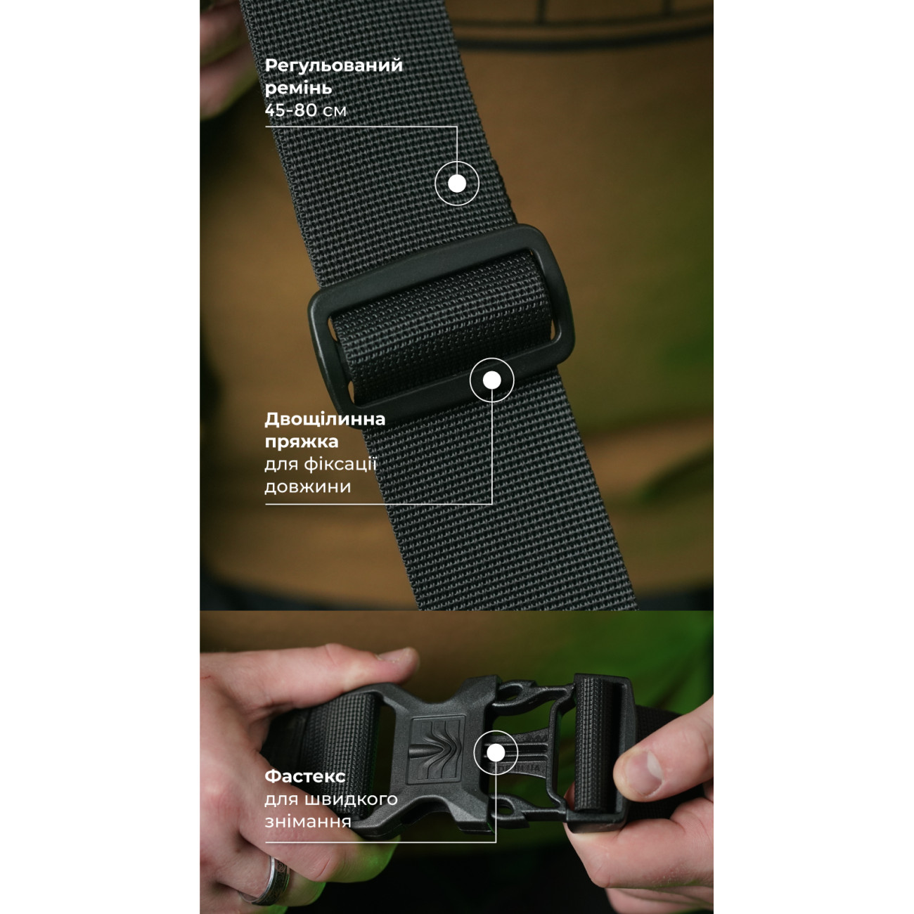 ✔️ Широкий ремінь із масивним фастексом регулюється за довжиною та забезпечує щільне прилягання бананки
