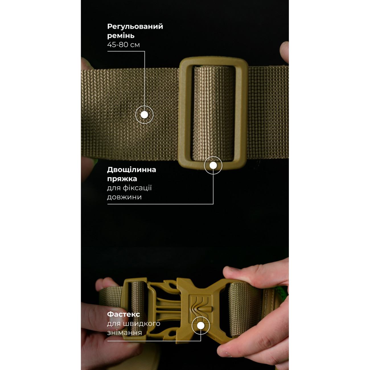 Так, ремінь легко регулюється для обох варіантів: на пояс або на плече.