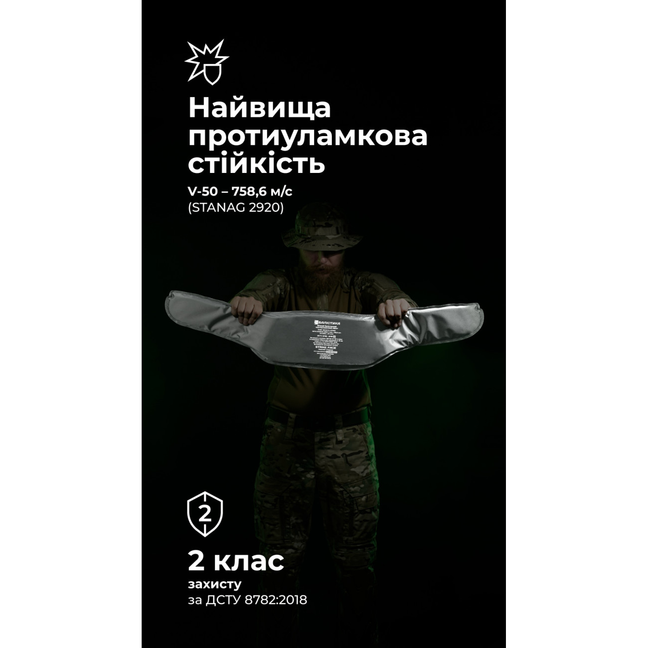 ✔️ Покриває область талії та попереку, однак через специфіку пояса абдомінальна зона залишається майже повністю відкритою. Для неї у «Балістика» передбачені окремі модулі захисту.
