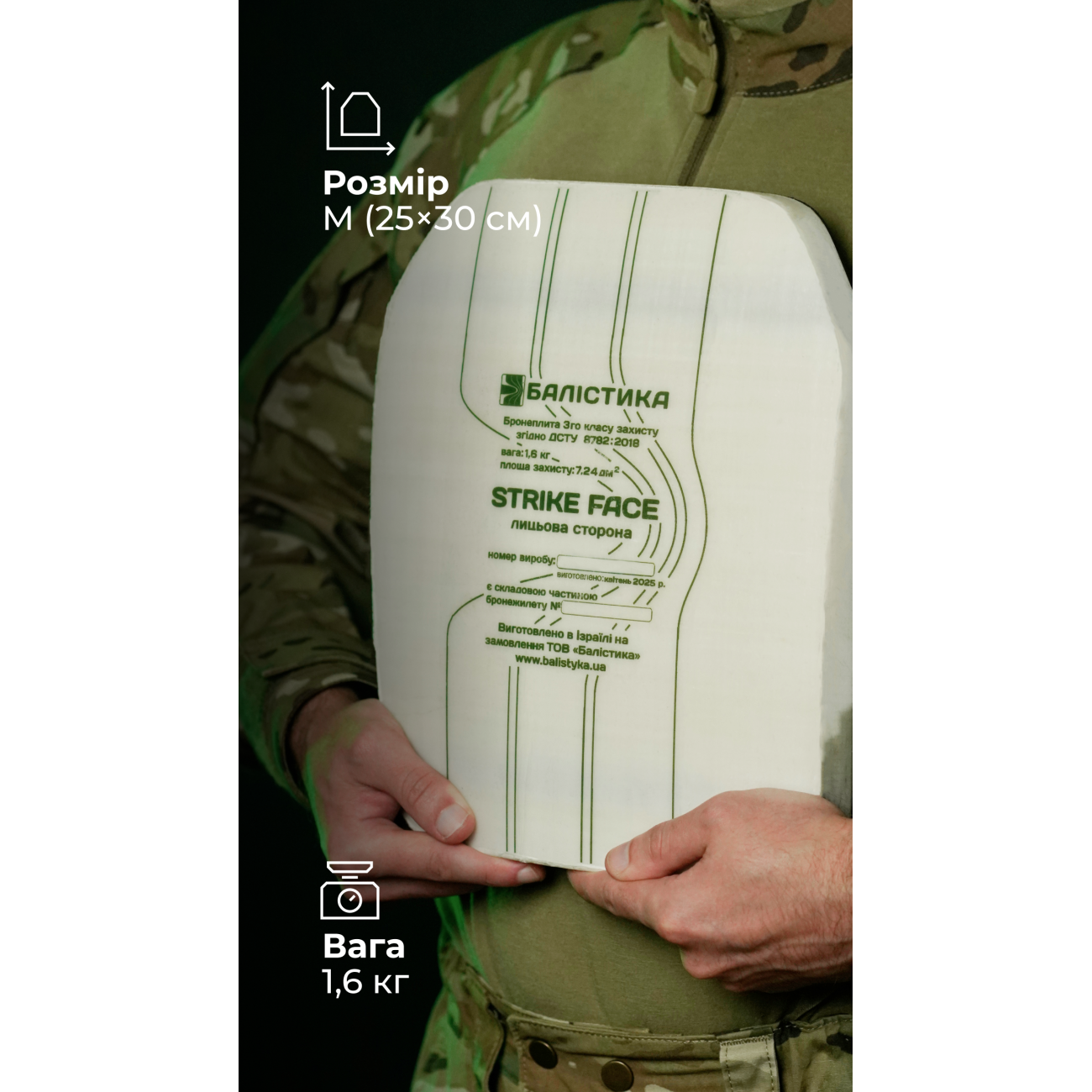 🔹 Плита призначена для тих, хто не перебуває безпосередньо на передовій, але близько до фронту. Наприклад, для операторів БПЛА, медиків, водіїв, логістів, правоохоронців, рятувальників, журналістів, волонтерів.