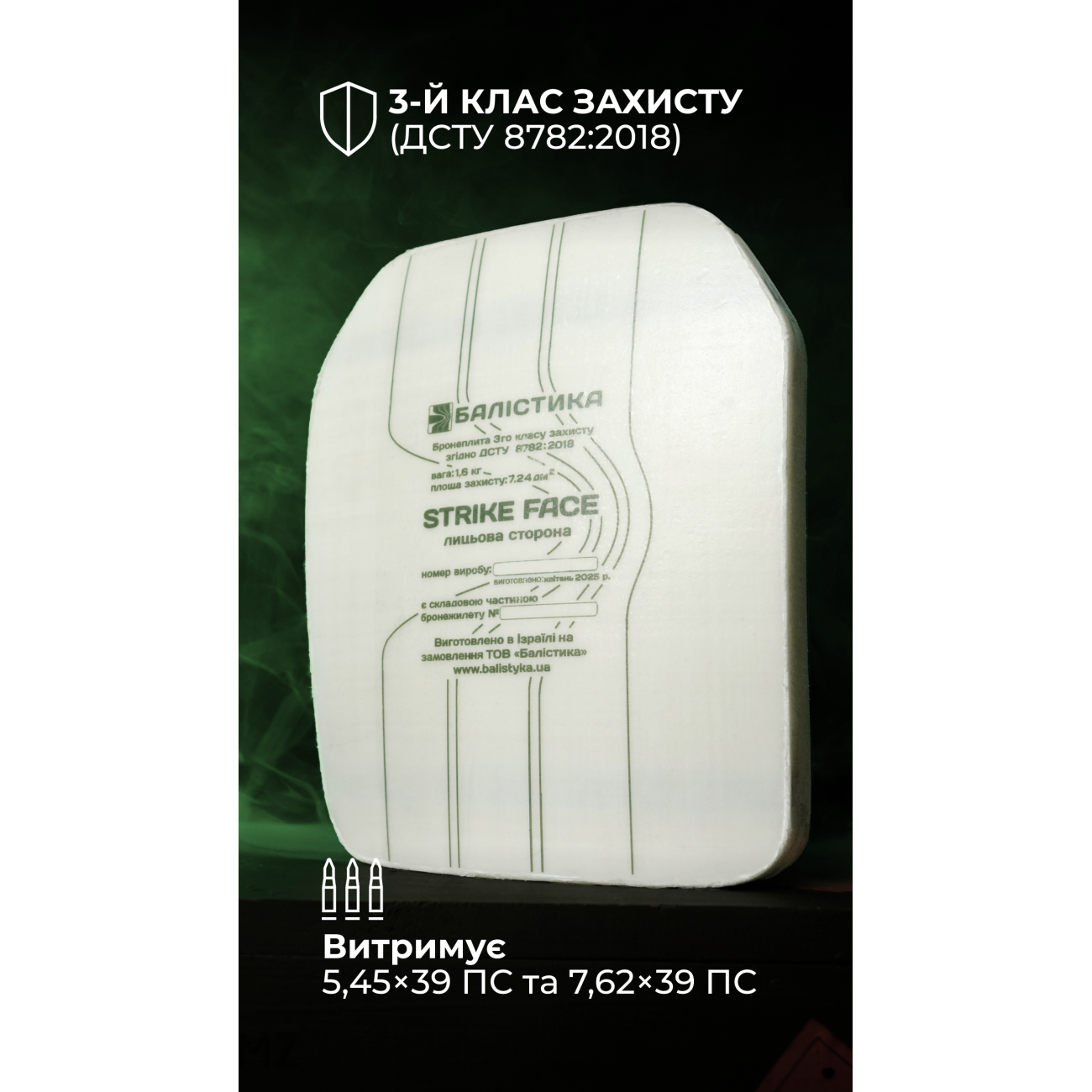 🔹 Витримує влучання 5,45×39 ПС з рожевою каймою до 1986 року та 7,62×39 ПС з рожевою каймою.
