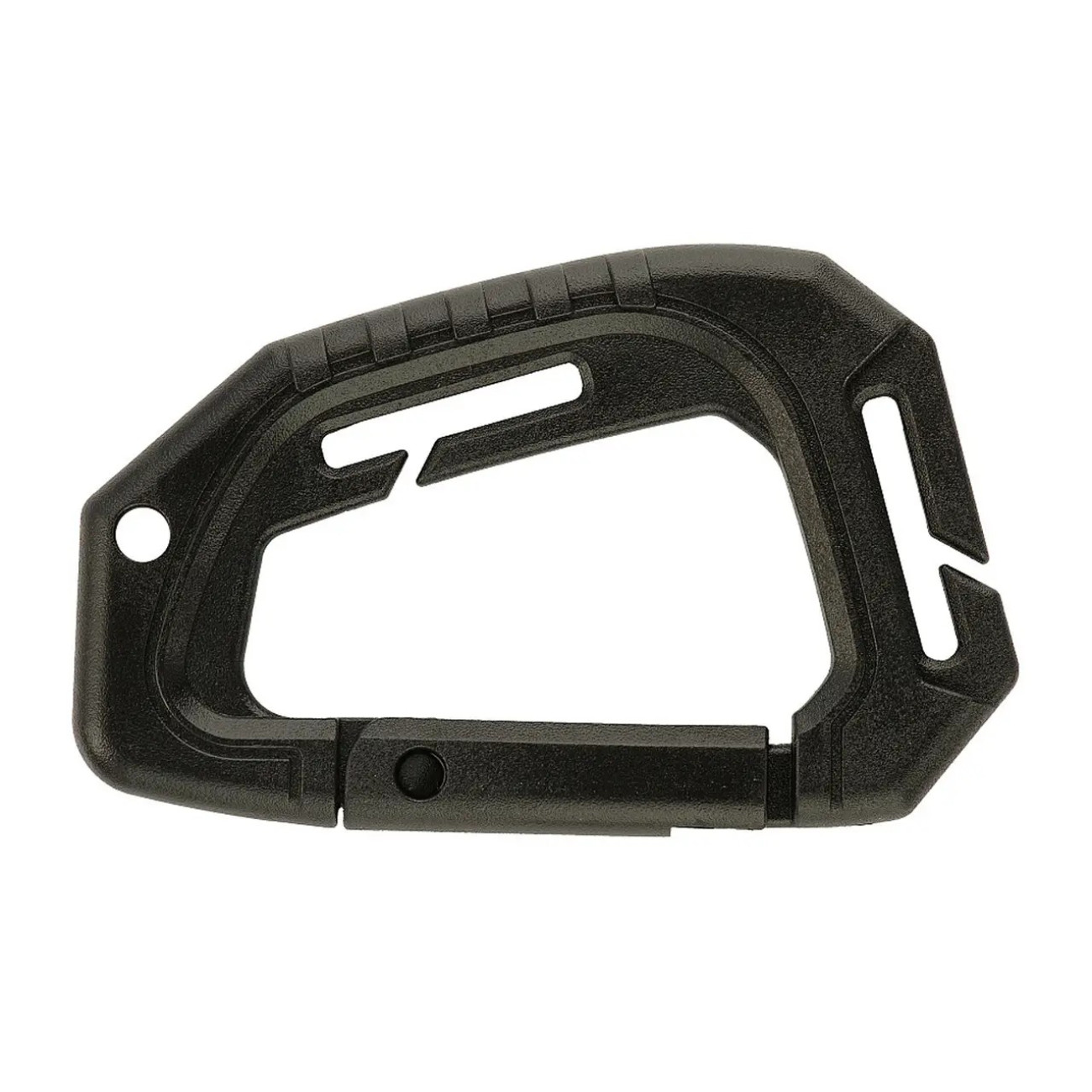 Пластиковий карабін створений для закріплення спорядження на розвантажувальних жилетах, рюкзаках, ременях або інших елементах екіпірування.