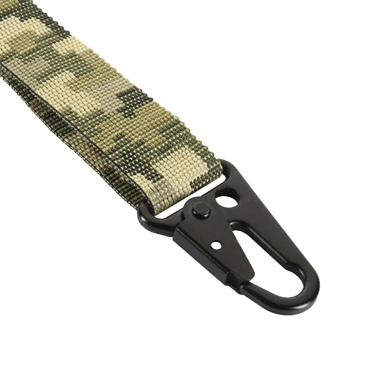 - Для стандартного двоточкового носіння: стропа кріпиться до антабки на прикладі, металевий карабін – на цівці або QD-антабці.