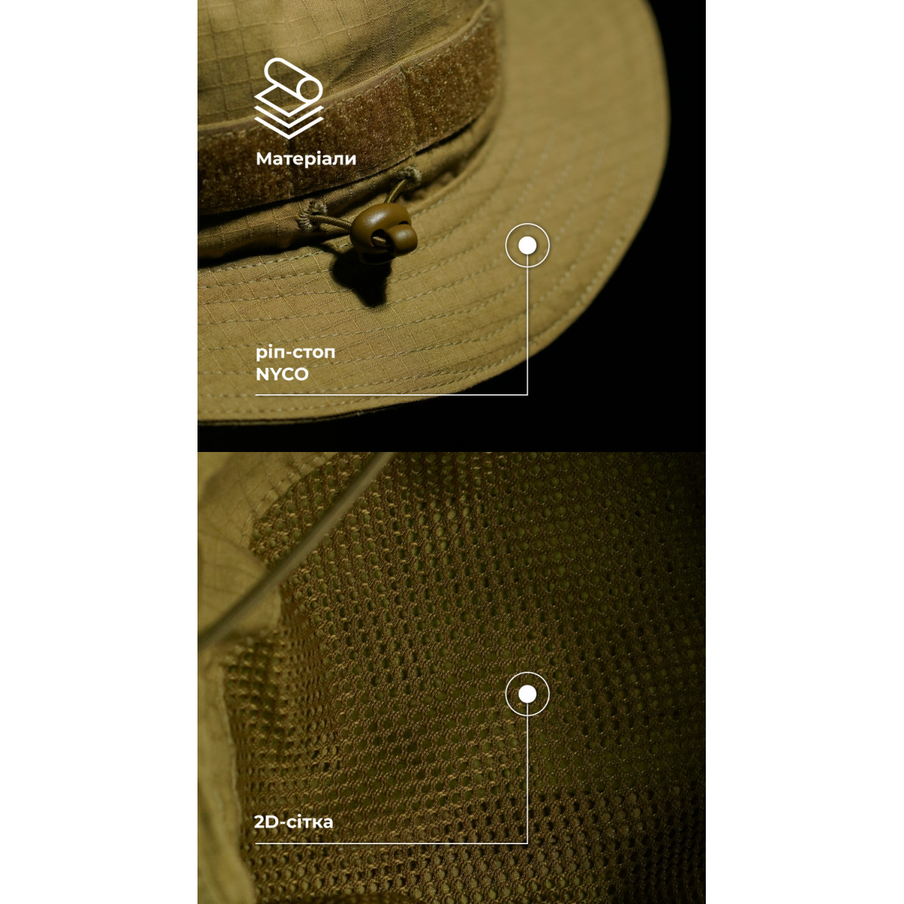 Тактична панама «Хьотр» призначена для захисту голови від сонця, перегріву й дрібного дощу.