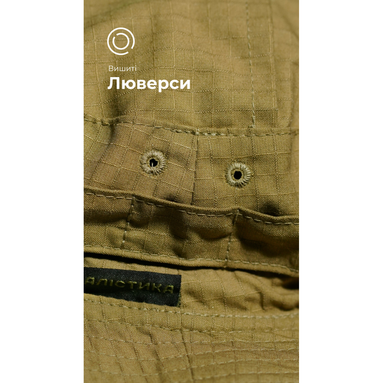 Так, матеріал ріп-стоп витривалий, не деформується й швидко сохне. Панама зберігає форму після намокання й підходить для багаторазового прання в польових умовах.