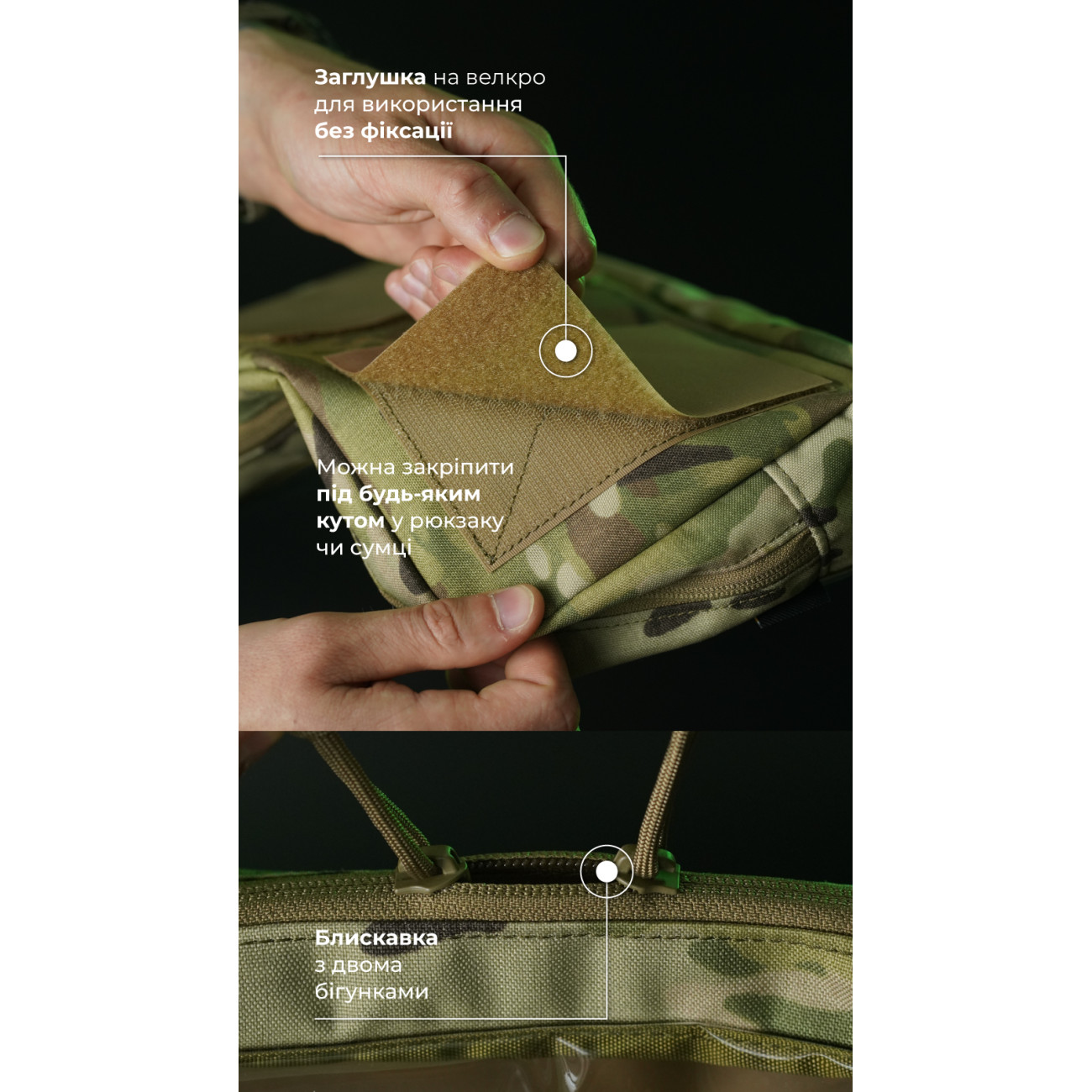🔹 Створений для кріплення до сумісних велкро-платформ всередині баулів, рюкзаків чи сумок