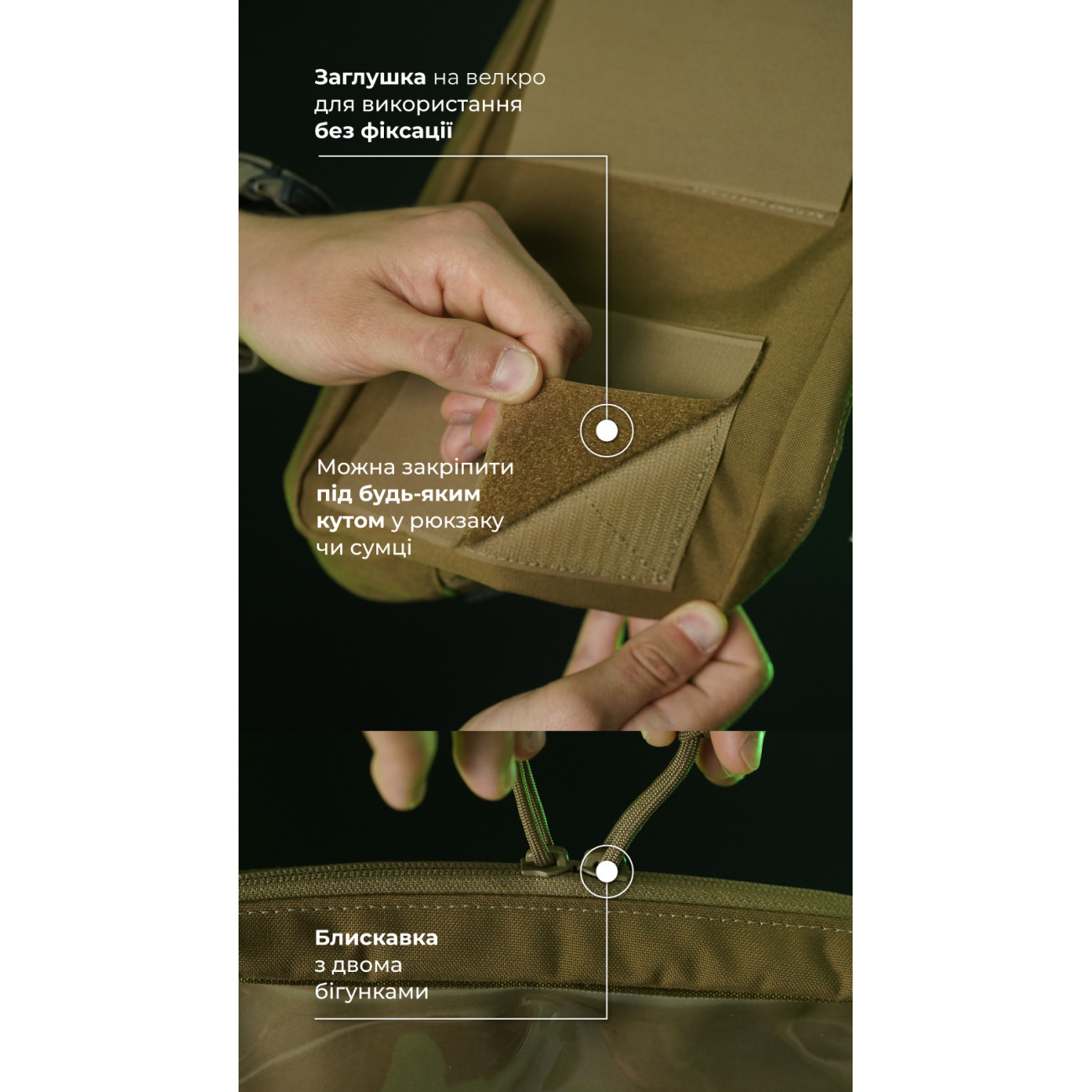 🔹 Створений для кріплення до сумісних велкро-платформ всередині баулів, рюкзаків чи сумок