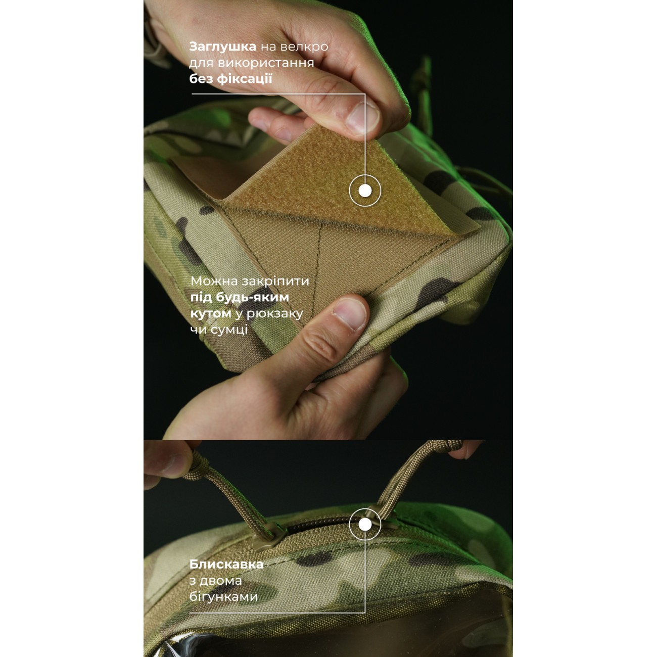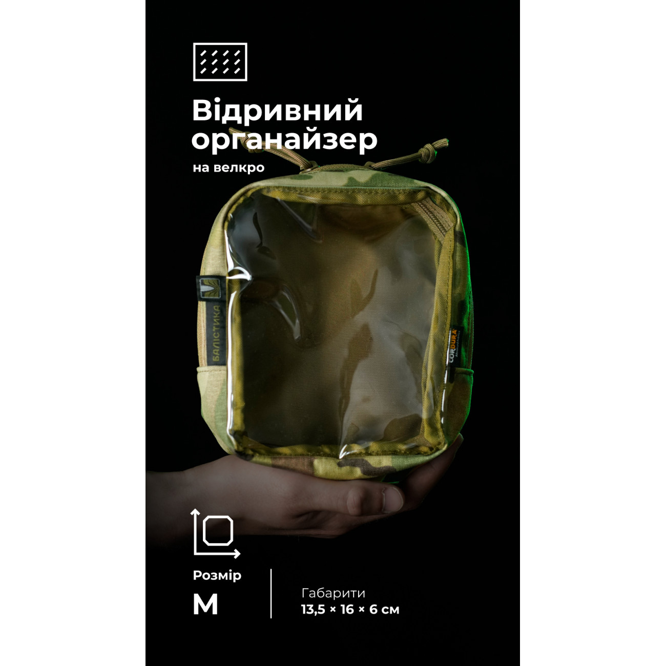 🔹 Фіксується на липучку: ззаду нашита велкро-панель розміром 10×13 см