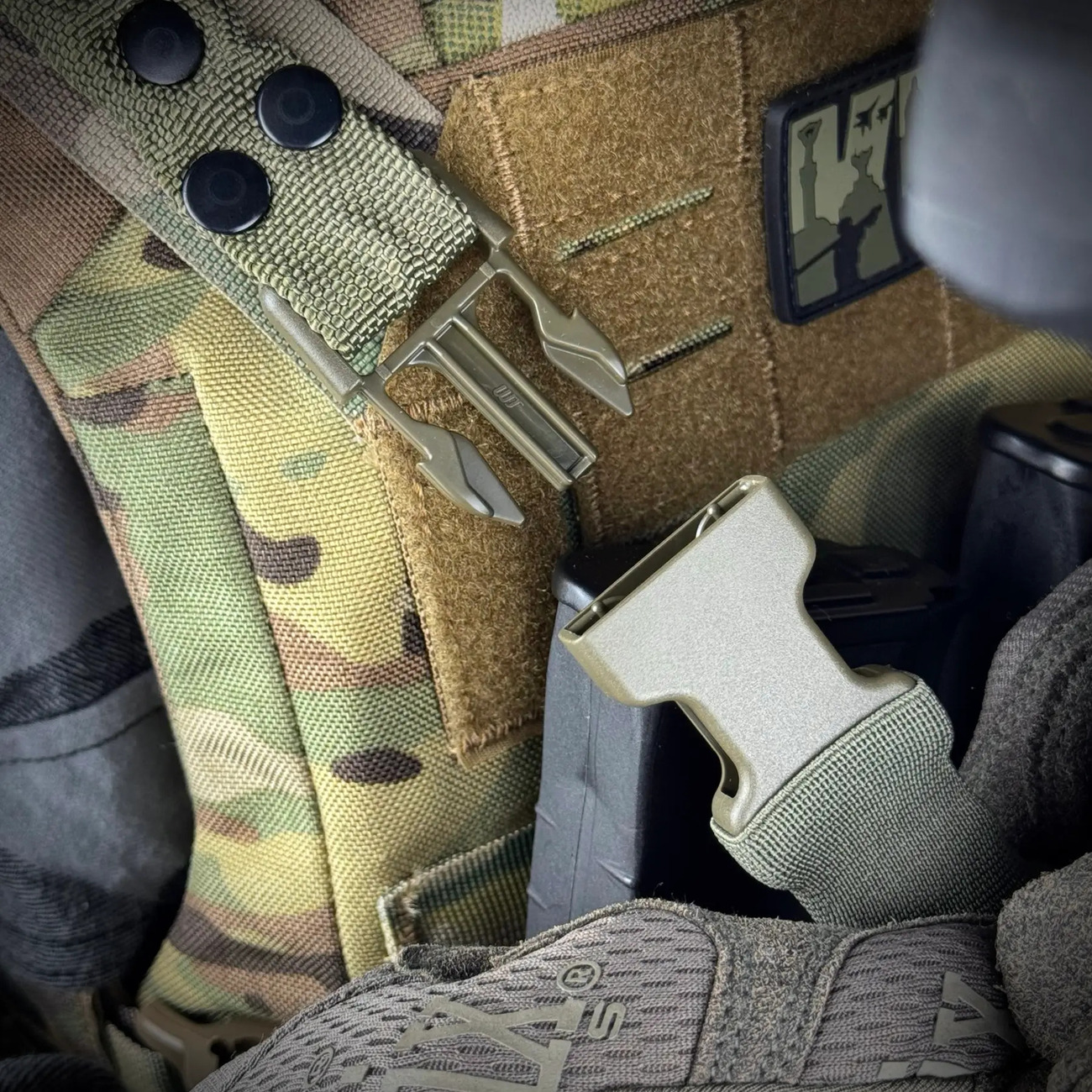 🔹 Після скидання зброї ремінь залишається зафіксованим на спорядженні і не заважає роботі.