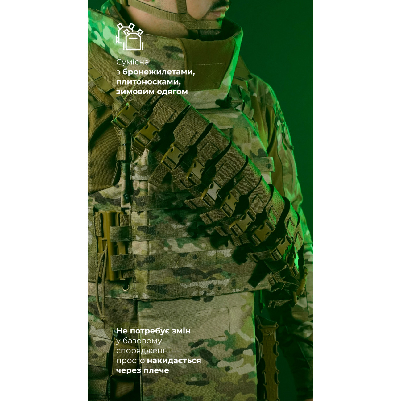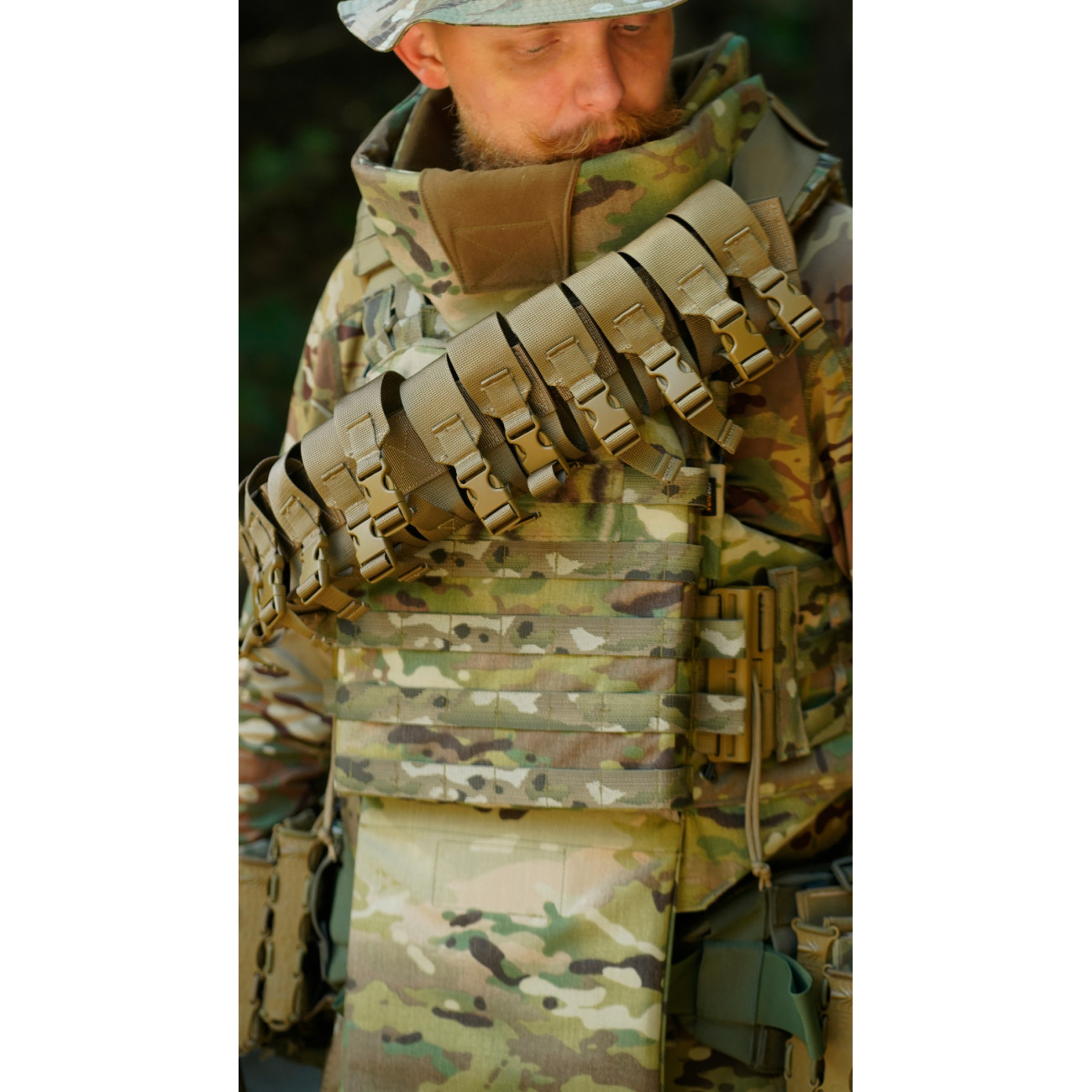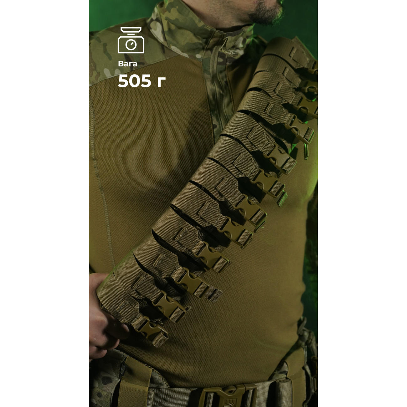 🔹 Завдяки достатній довжині бандольєра підходить для бійців із кремезною статурою, під великі бронежилети та об’ємні зимові куртки.
