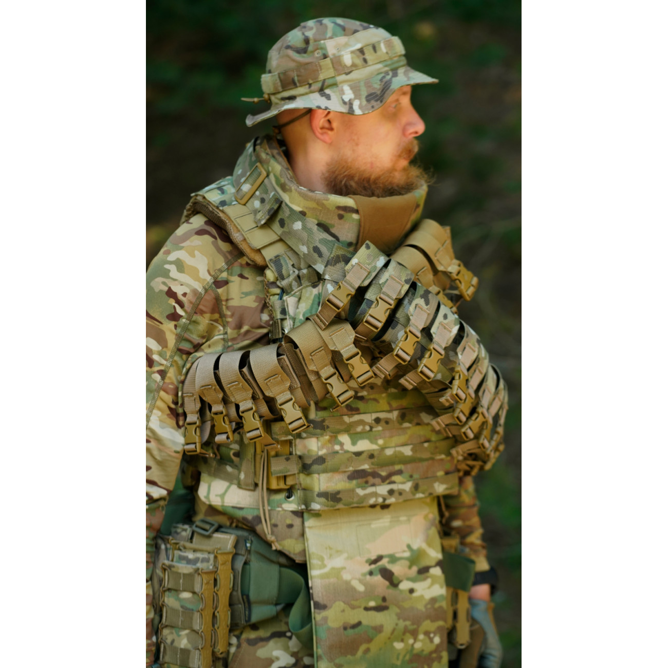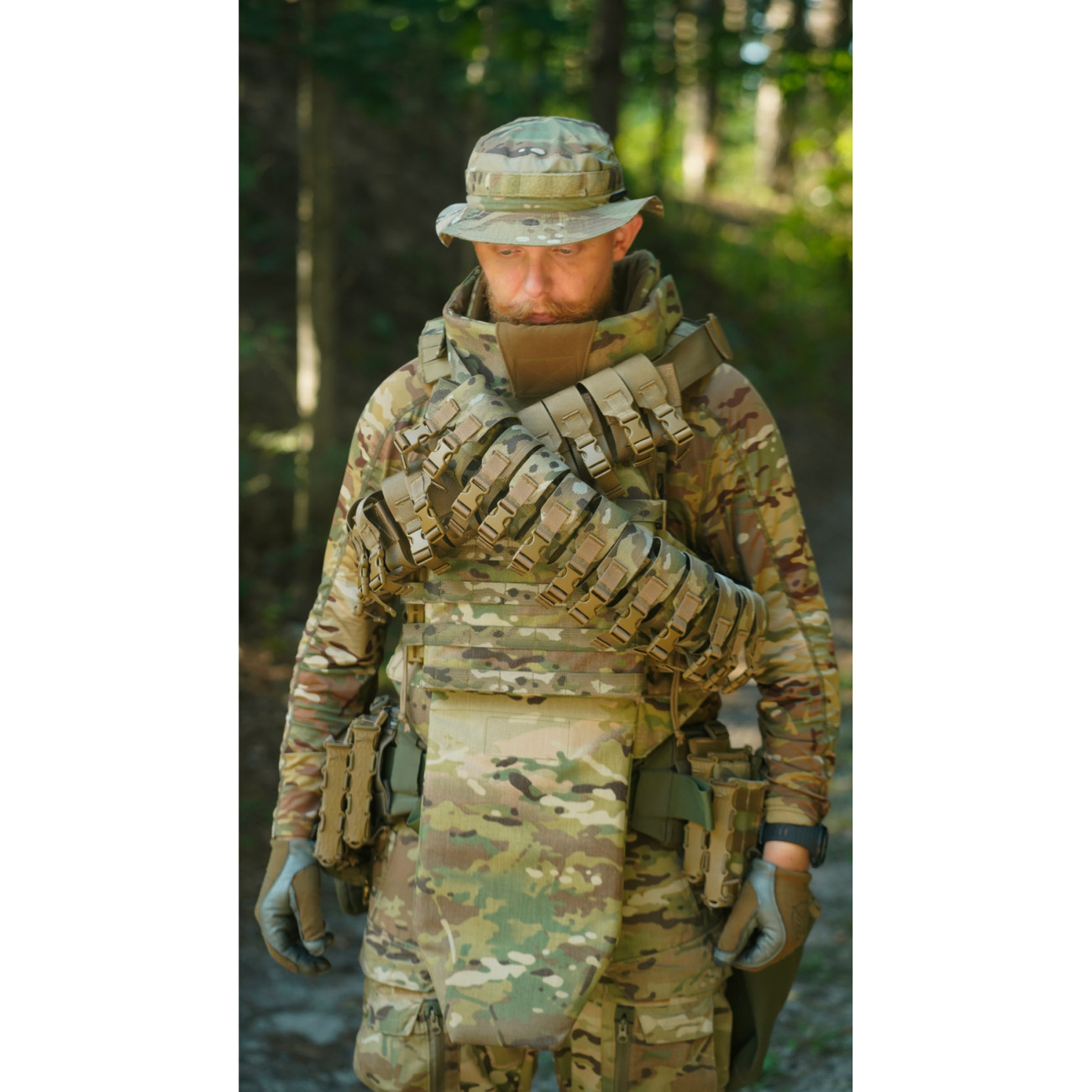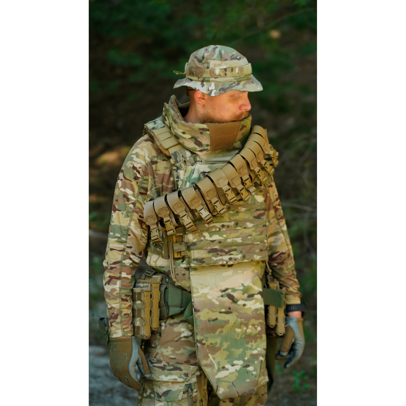 🔹 Завдяки достатній довжині бандольєра підходить для бійців із кремезною статурою, під великі бронежилети та об’ємні зимові куртки.