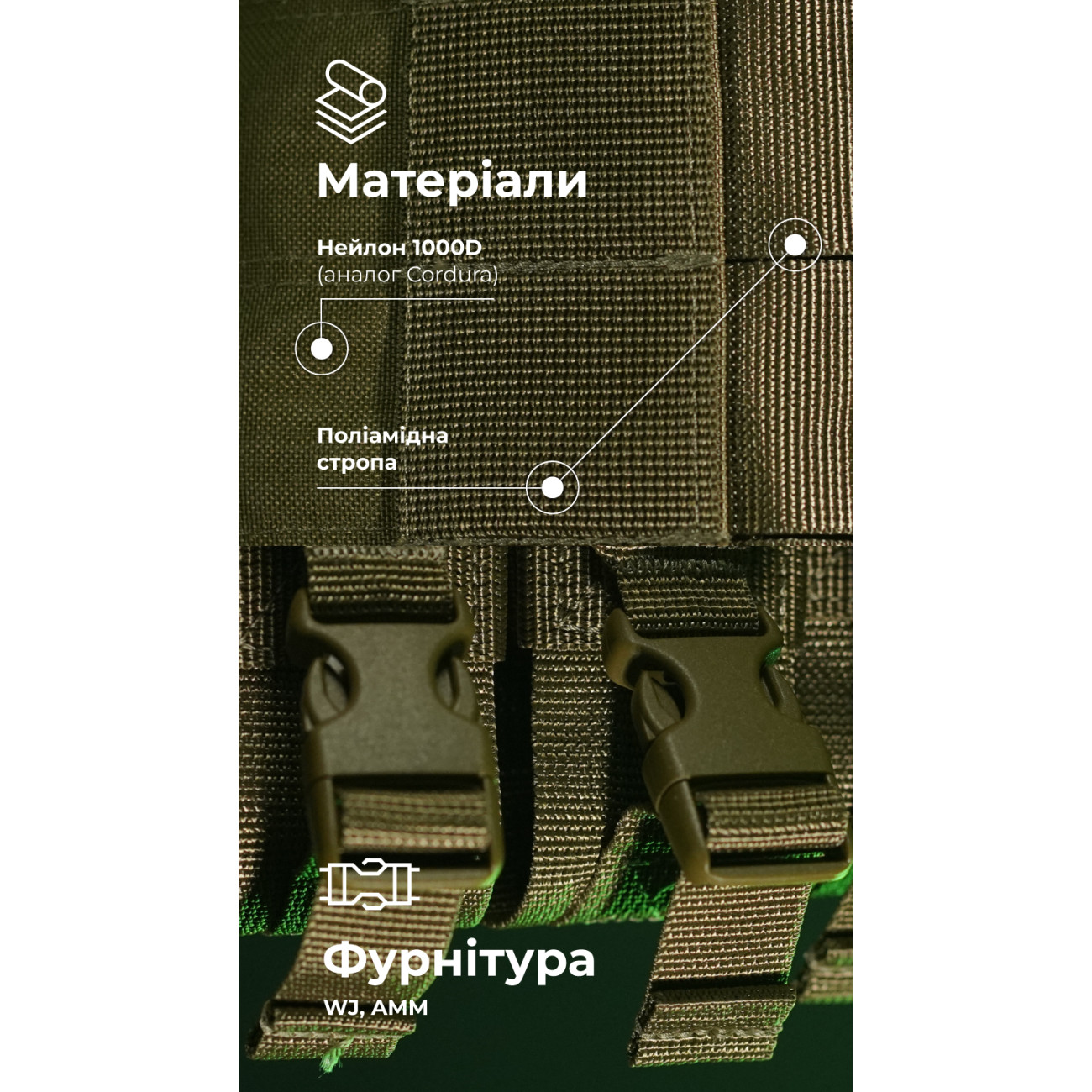 - Поліамідна стропа + нейлон 1000D, витривала фурнітура WJ, AMM
