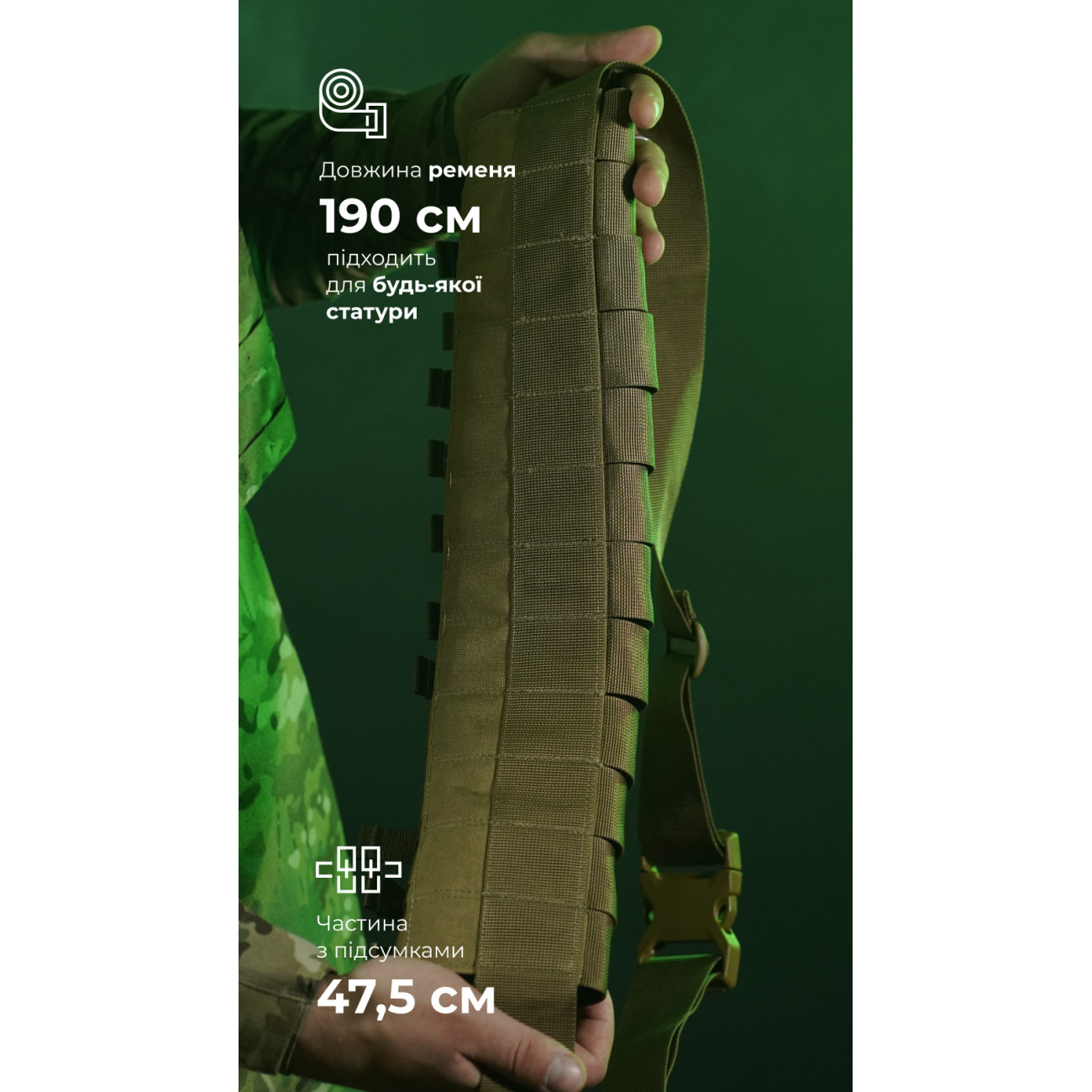 - Довжина ременя (190 см) підходить для будь-якої статури, бронежилетів або зимового одягу