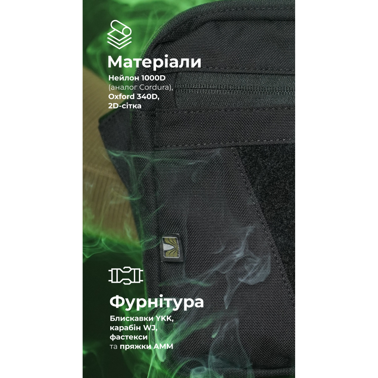 ✔️ На задній стінці нашита велкро-панель (25,5×15,5 см), призначена для знімних органайзерів, кобур або тримачів, наприклад під газовий балончик.
