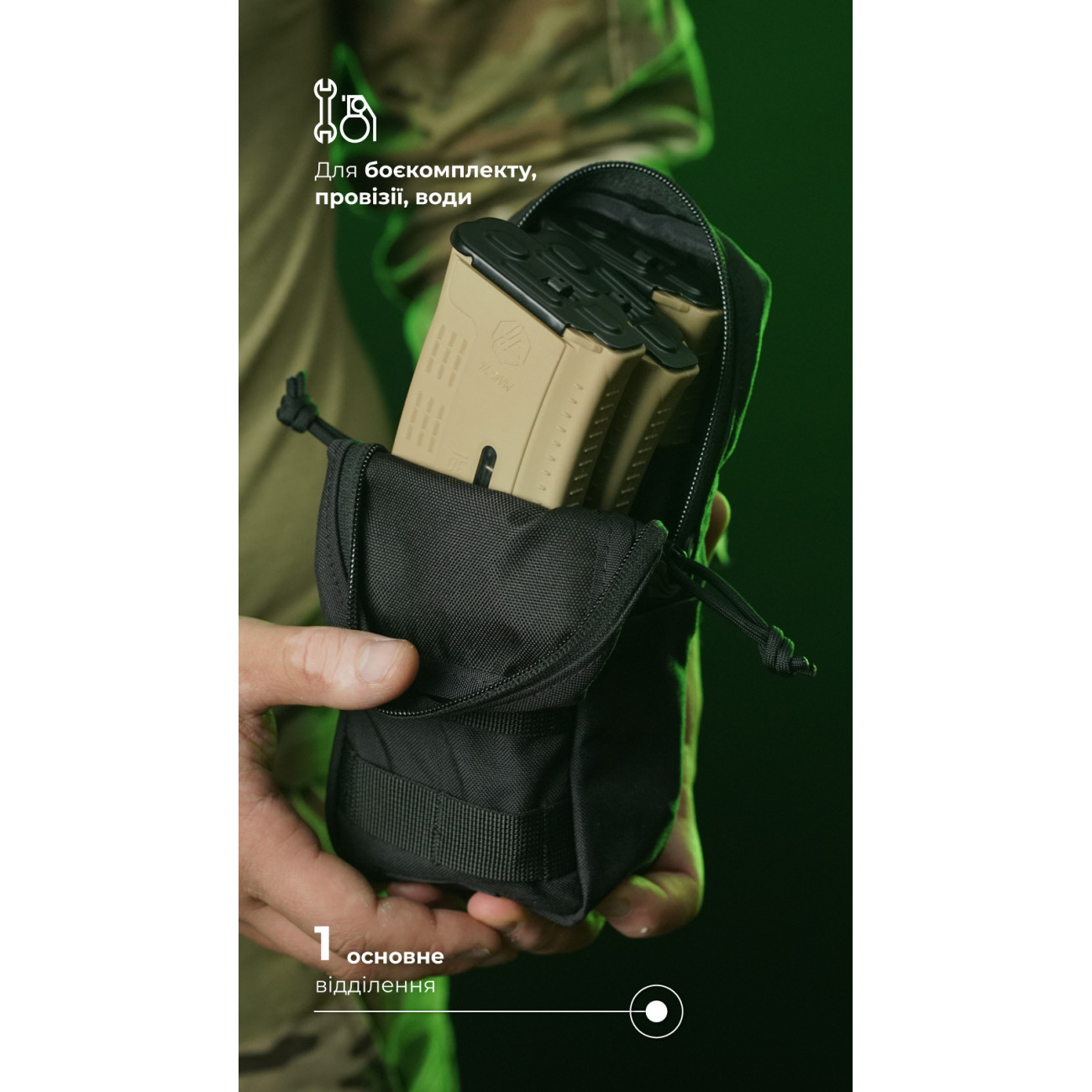 Місткий і витривалий підсумок підходить для організованого зберігання дрібного спорядження, інвентарю, боєприпасів, провізії
