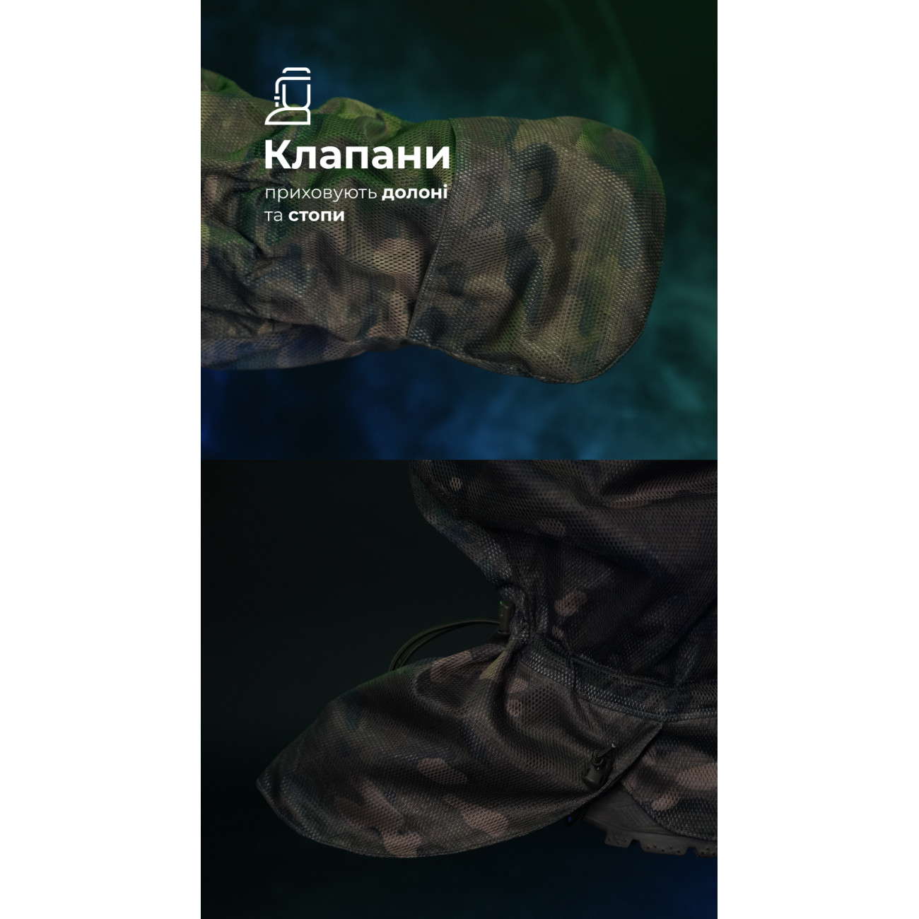 ✔️ У комплекті йдуть два знімні нарукавники з клапанами, які приховують долоні на зразок рукавиць, та бахіли з клапанами для стоп.