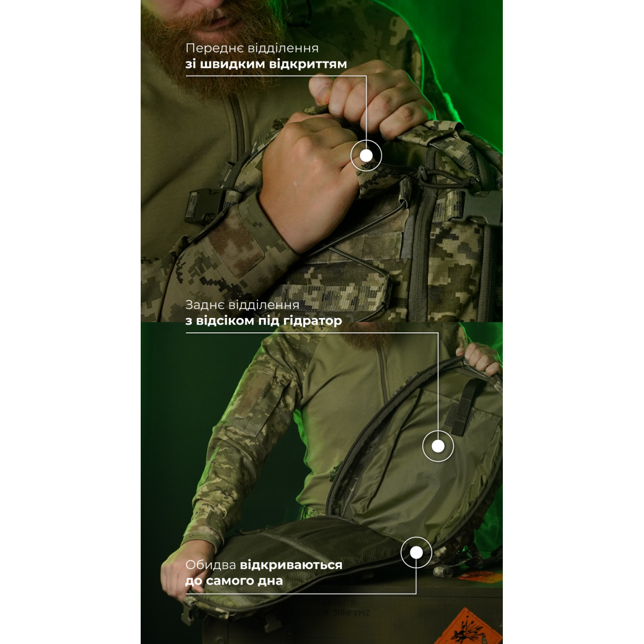 Цей рюкзак призначений для використання у штурмових умовах. У ньому зручно переносити БК, гідратор, добовий раціон та інші необхідні штурмовику речі.