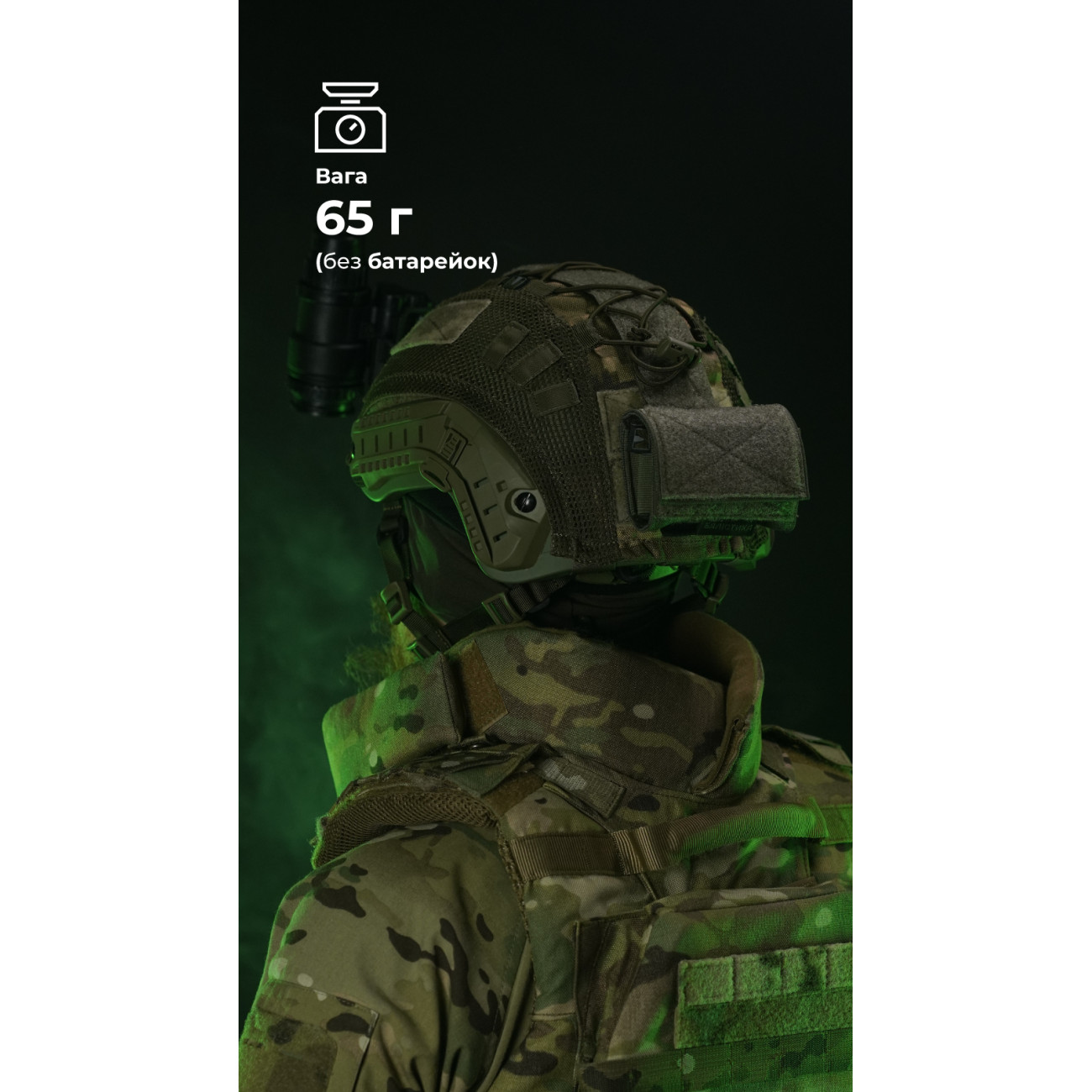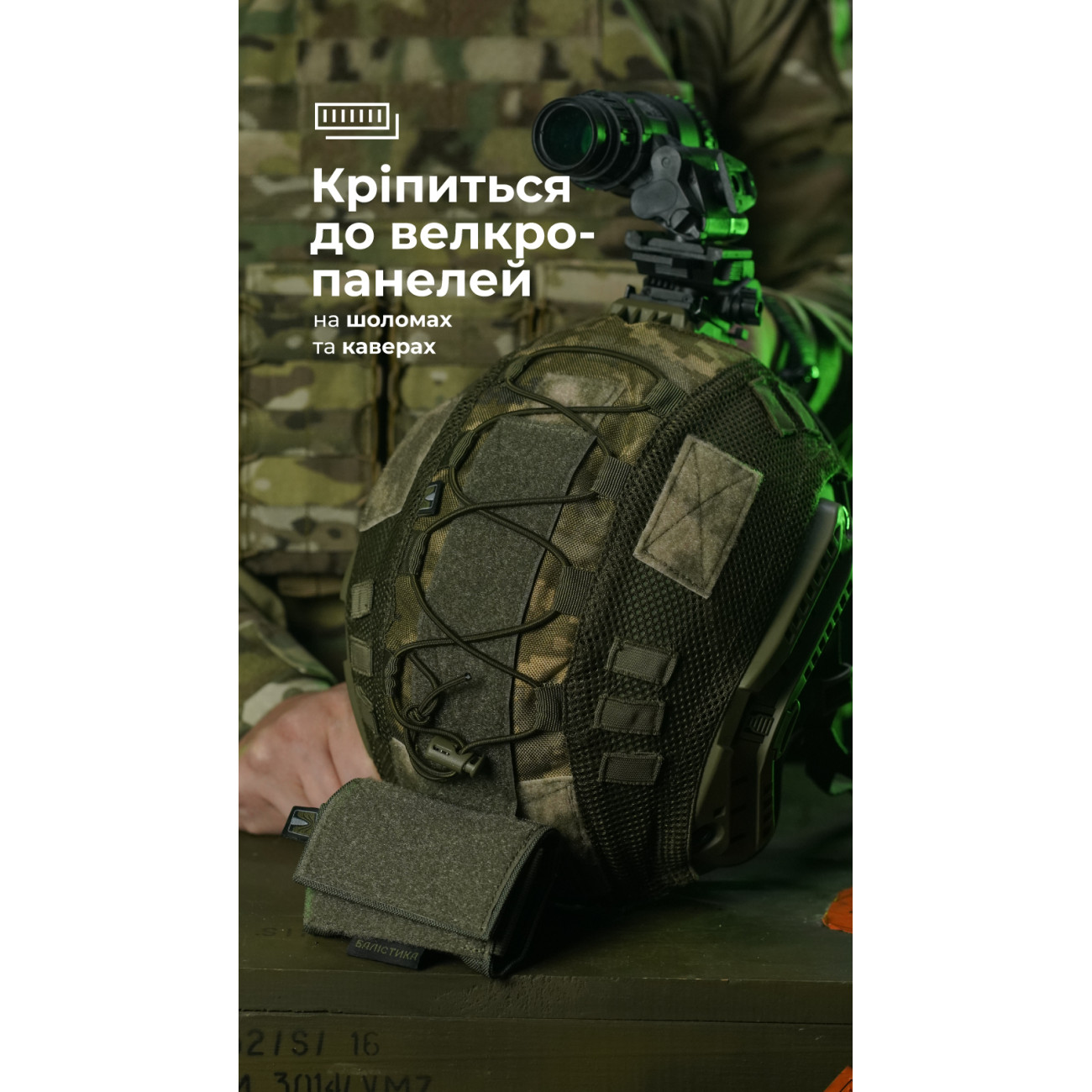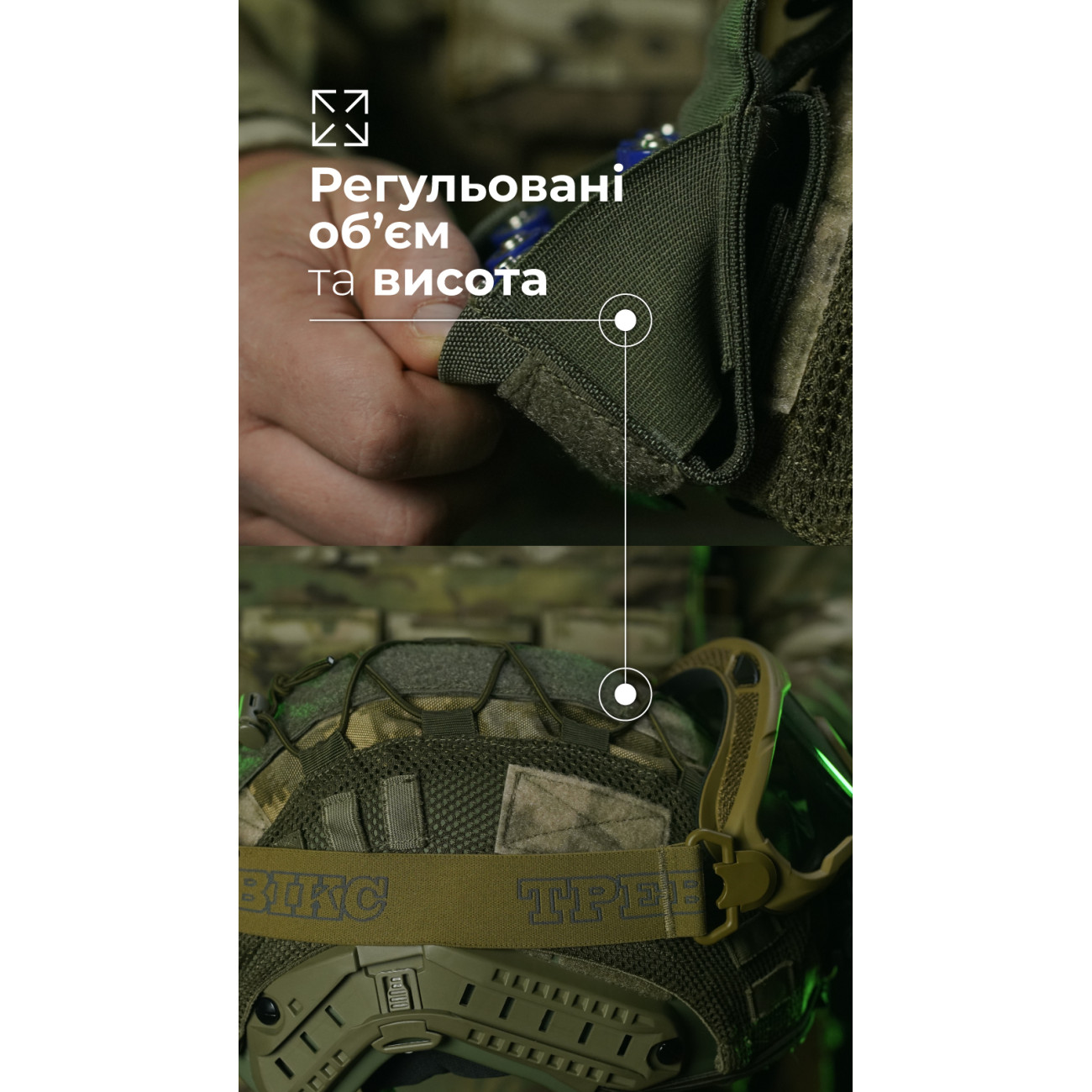 🔹 Забезпечує надійне кріплення завдяки «хвосту» (20×5 см) з велкро, що лягає на верхню частину шолома або кавера на шолом.