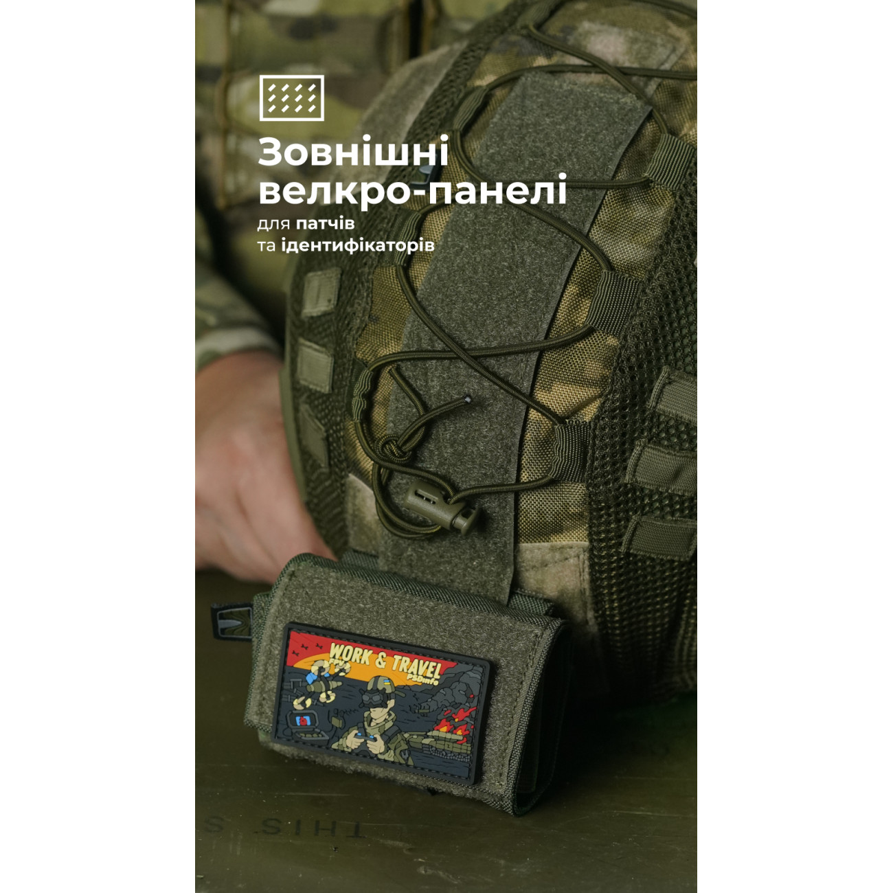 🔹 На велкро-панель на зовнішній стороні «хвоста» та на клапані кишені можна прикріпити патчі та ідентифікатори.