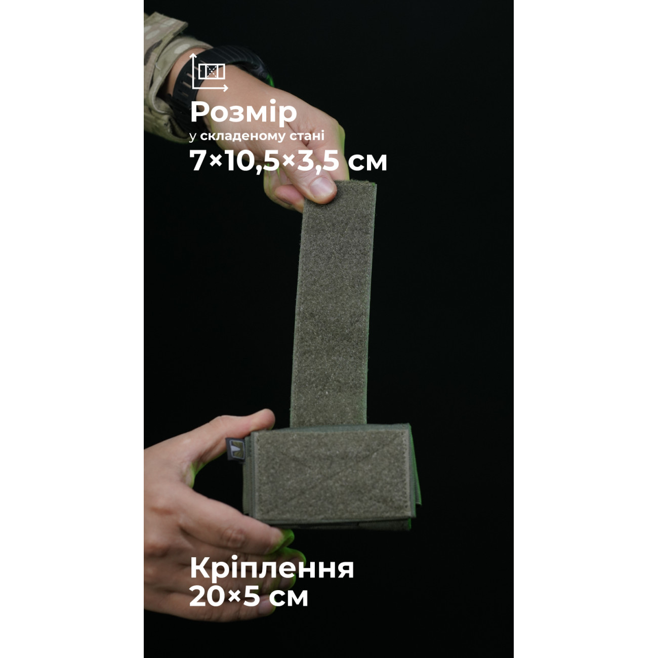 🔹 З зовнішньої сторони підсумка розташований доступ до кишені (10,5×6 см), яка застібається велкро-клапаном.
