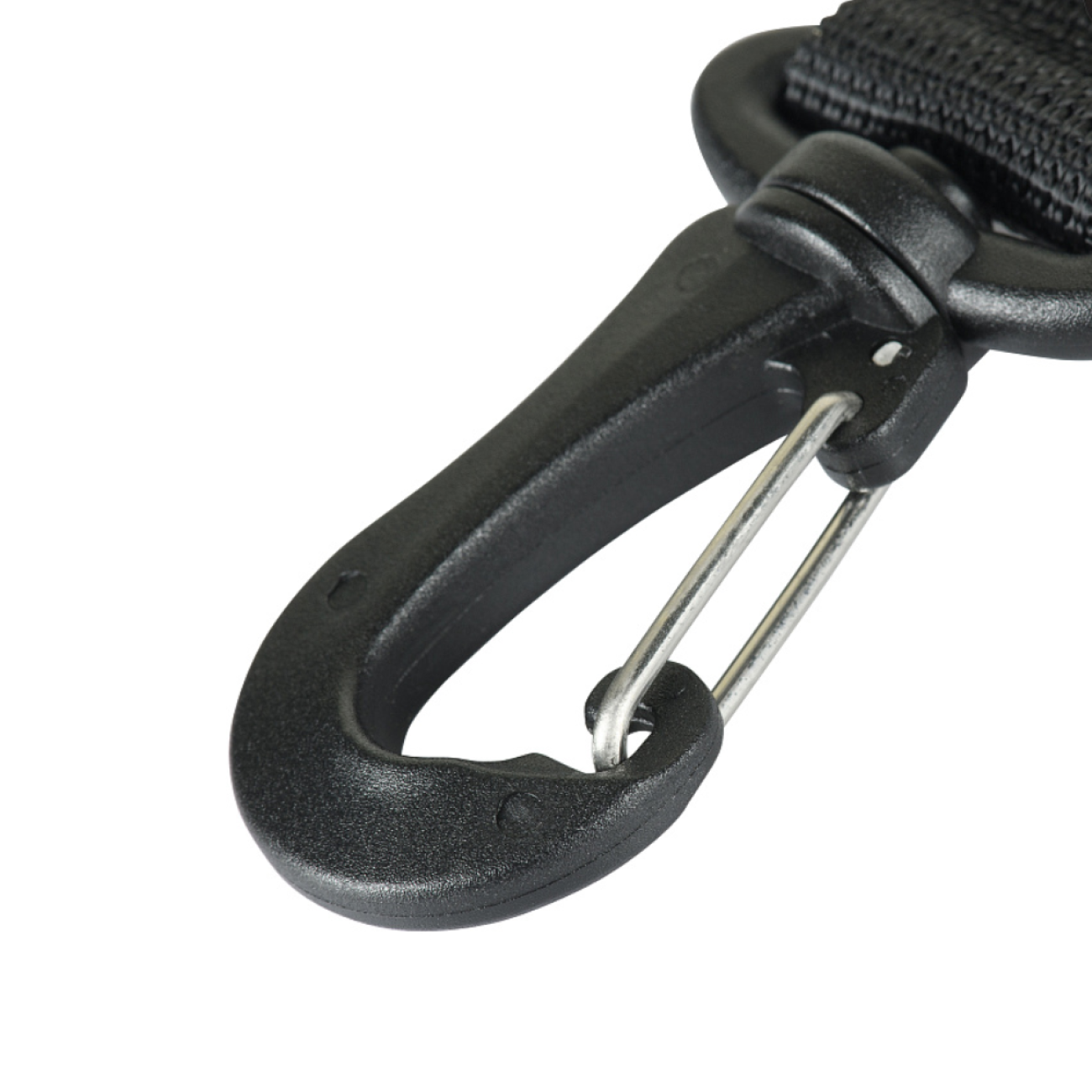 🔹 Застібка карабіна відкривається всередину одним натисканням пальця та дозволяє надійно утримувати навішені на нього предмети.