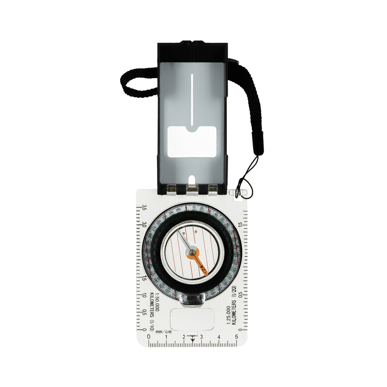 🔹 Компас оснащений дзеркалом для точного визначення азимута.