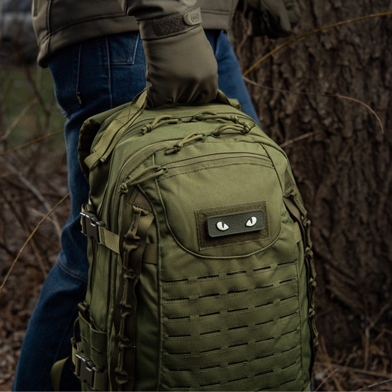 M-Tac нашивка Cat Eyes, так званий "morale patches", можна кріпити на майданчик з велкро-липучки бейсболки або рюкзака.