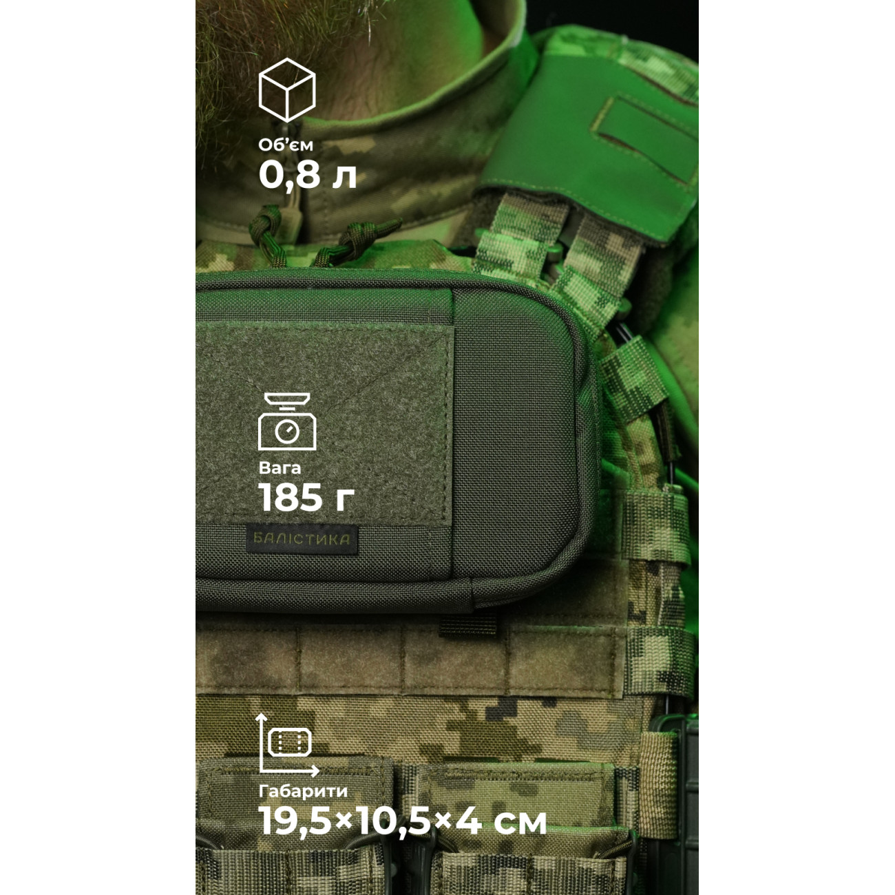🔹 Спереду має велкро-панель (10×7 см), на яку можна кріпити патчі та ідентифікатори.