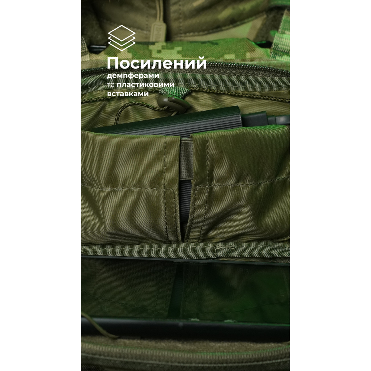 ✔️ Завдяки цьому при розміщенні підсумка на передній панелі плитоноски чи бронежилета він виступає робочою платформою і звільняє руки.