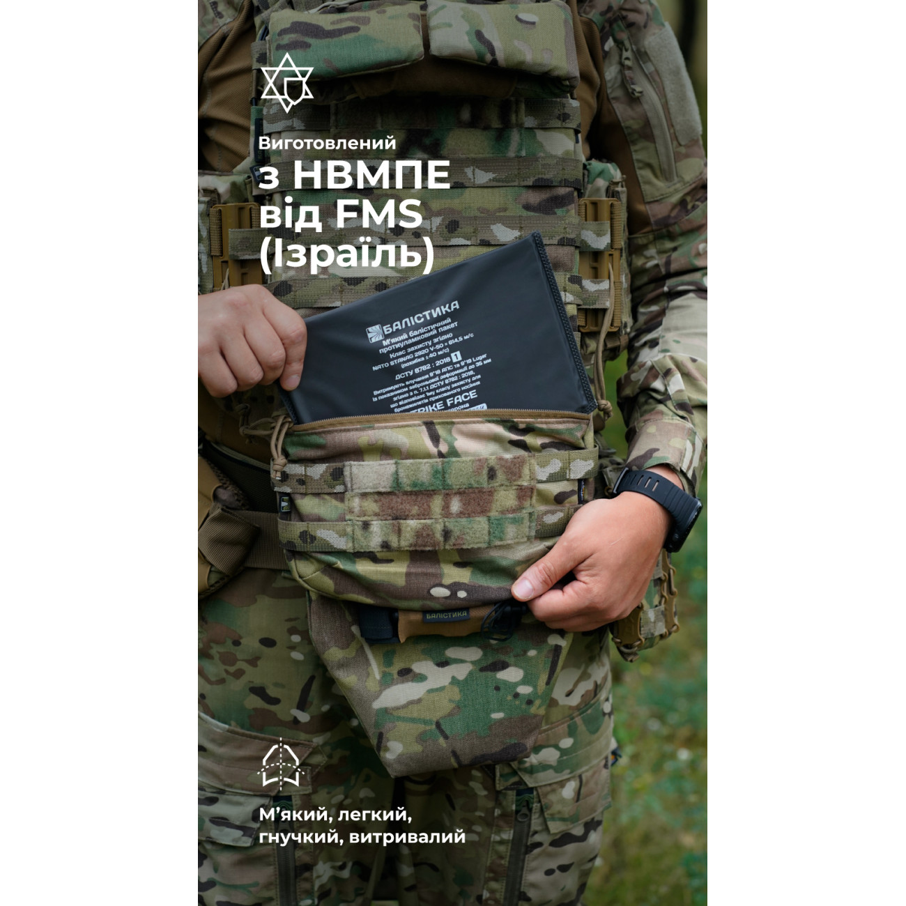 🔹 Продуманное количество слоев и естественная гибкость материала способствуют тому, что бронепакет адаптируется к форме тела и не мешает в бою.
