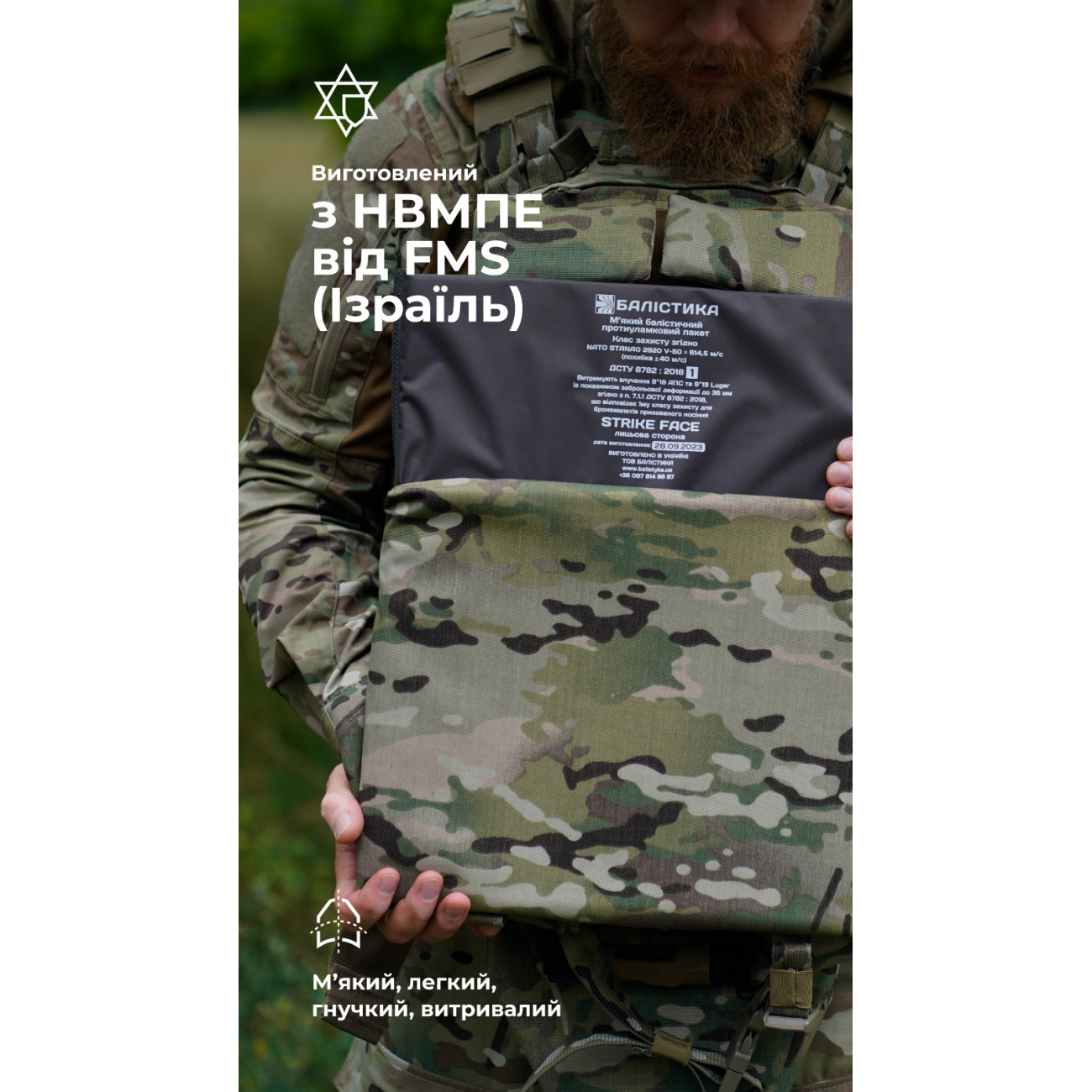 🔹 Продуманное количество слоев и естественная гибкость материала способствуют тому, что бронепакет адаптируется к форме тела и не мешает в бою.