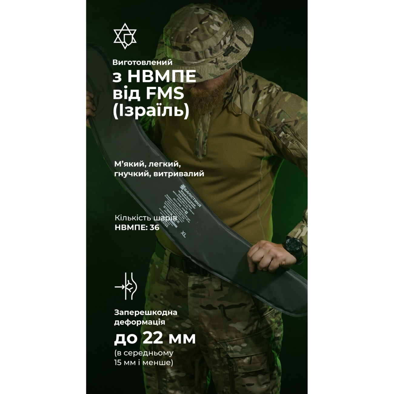 🔹 Продуманное количество слоев и естественная гибкость материала способствуют тому, что бронепакет адаптируется к форме тела и не мешает в бою.