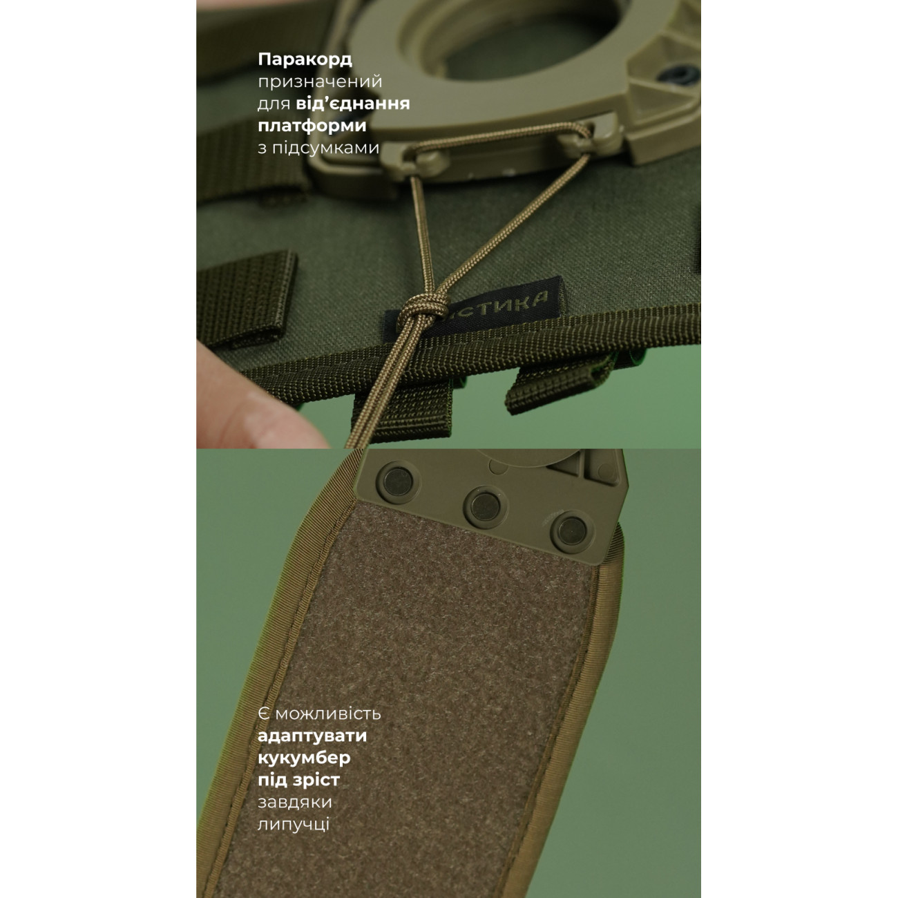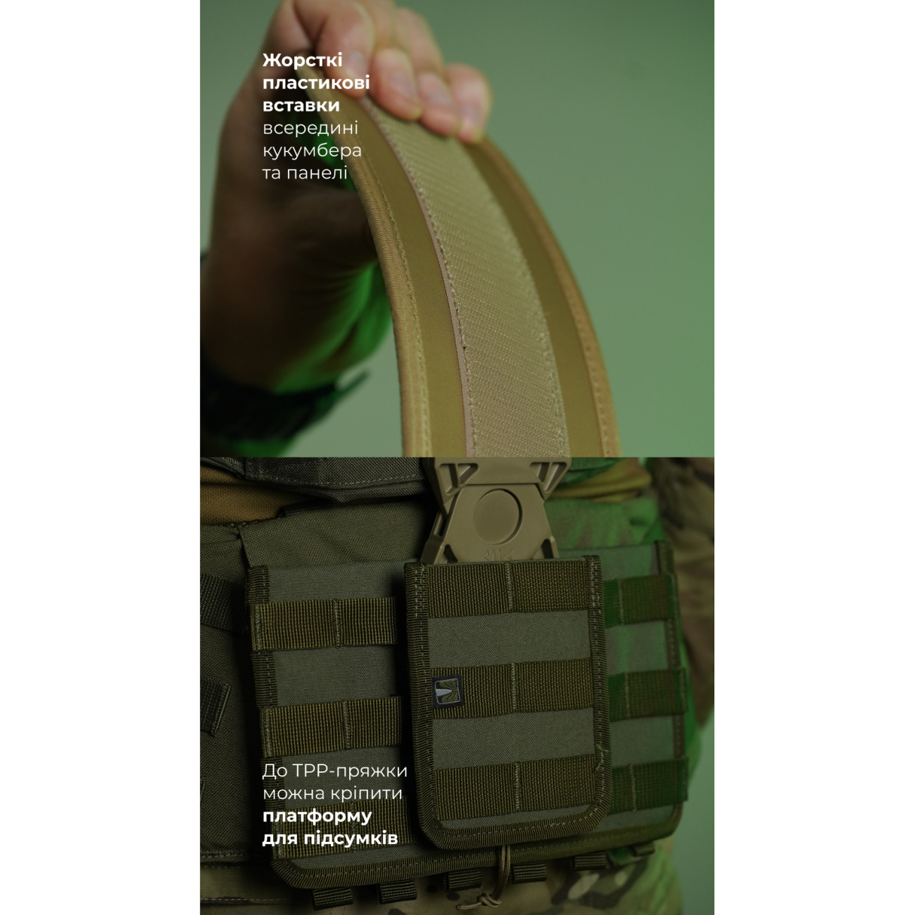 Соединяет плитоноску и РПС в единую конструкцию, которая переносит нагрузку с плеч и спины на ноги. Это уменьшает усталость, улучшает подвижность и дольше сохраняет эффективность в бою.