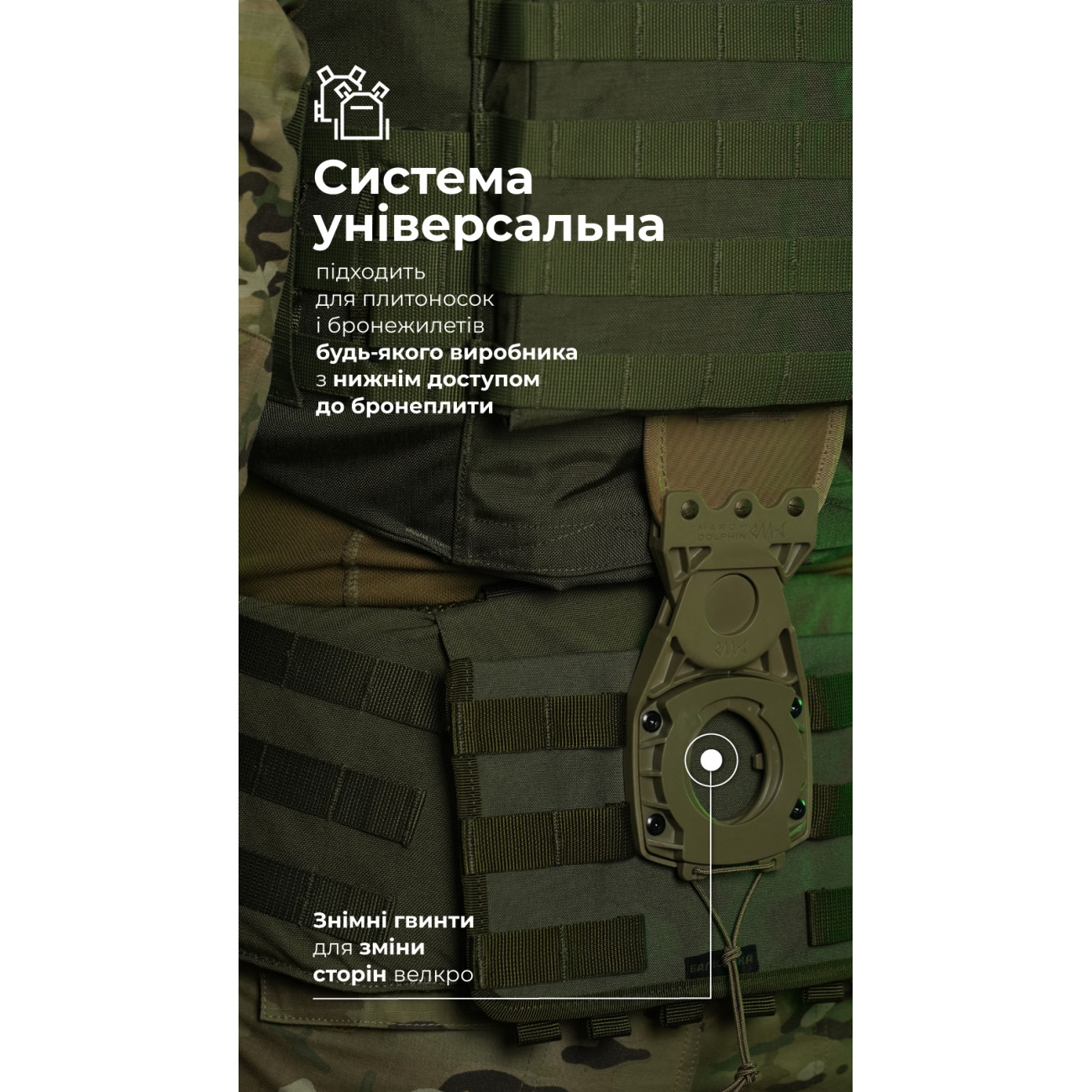 - Система универсальна, подходит для плитоносок и бронежилетов любого производителя с нижним доступом к бронеплите