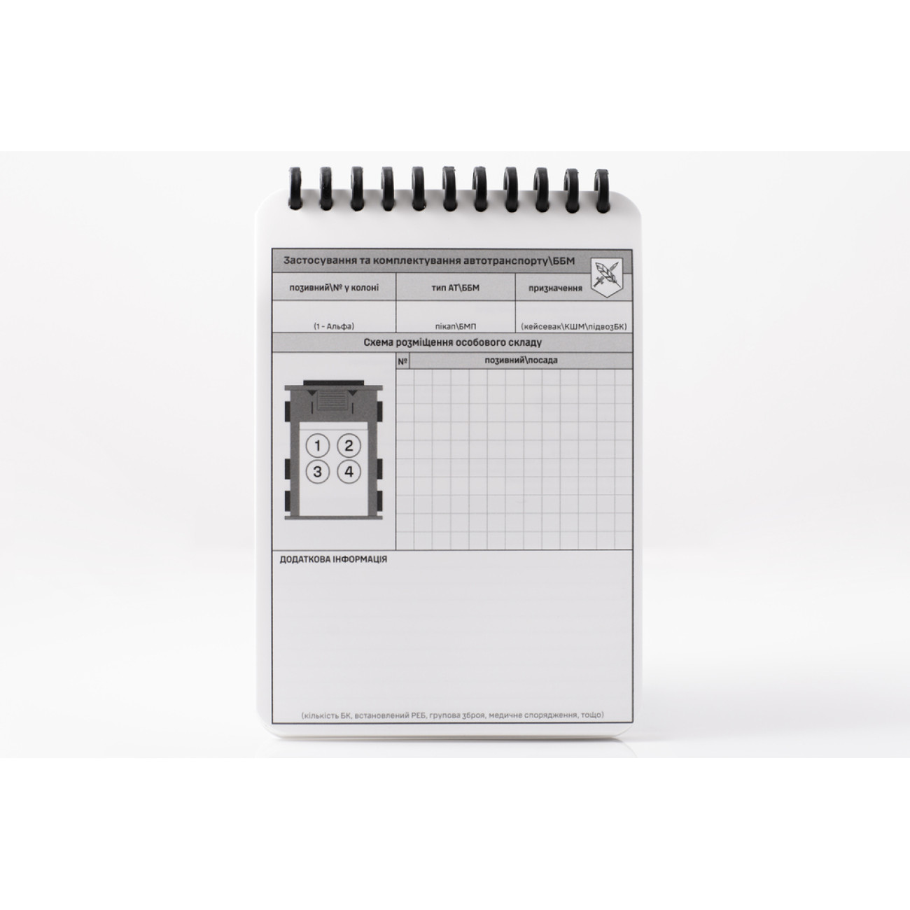 В блокнот включен набор шаблонов, помогающих командирам и бойцам поддерживать организованность в условиях боевых действий. В частности, это такие материалы: