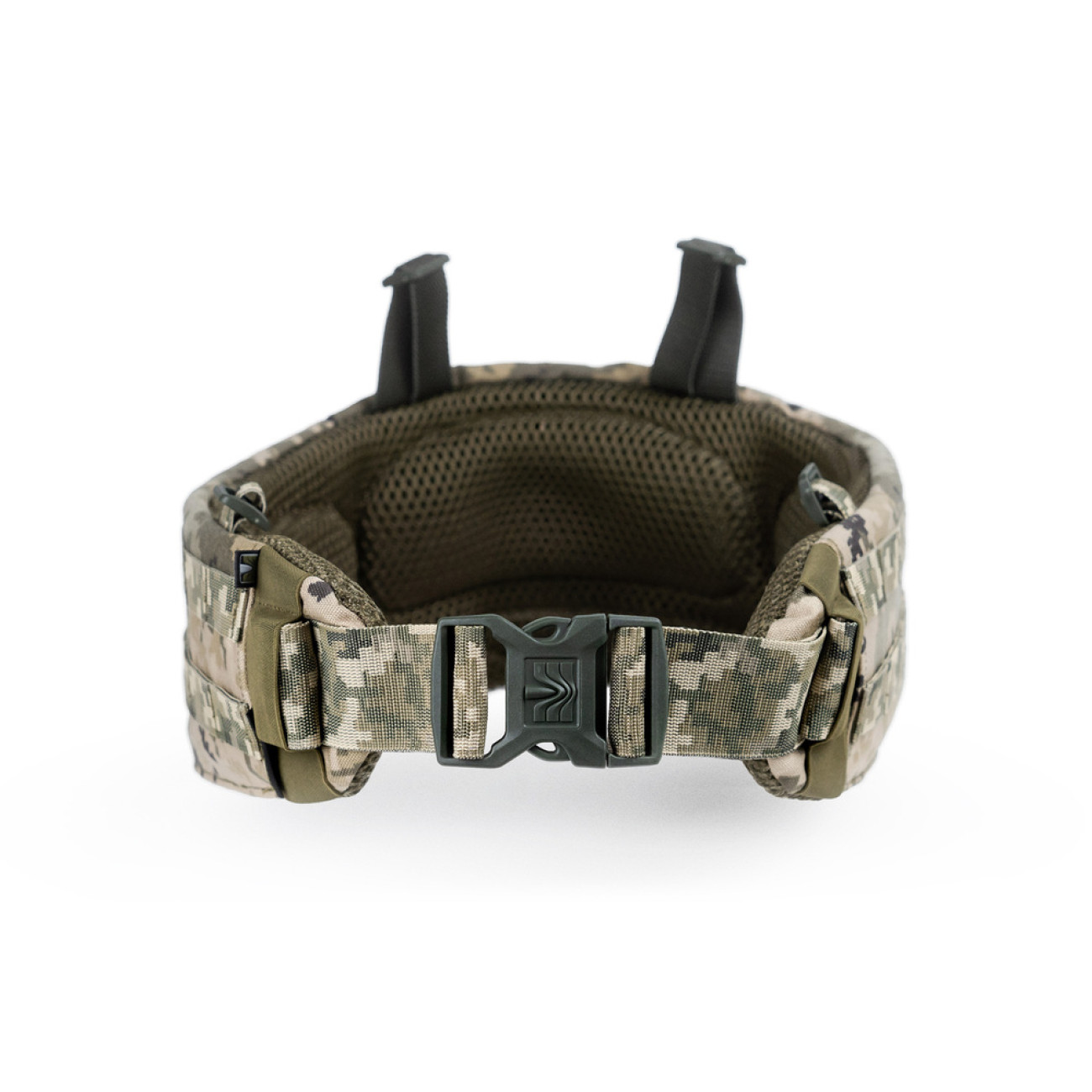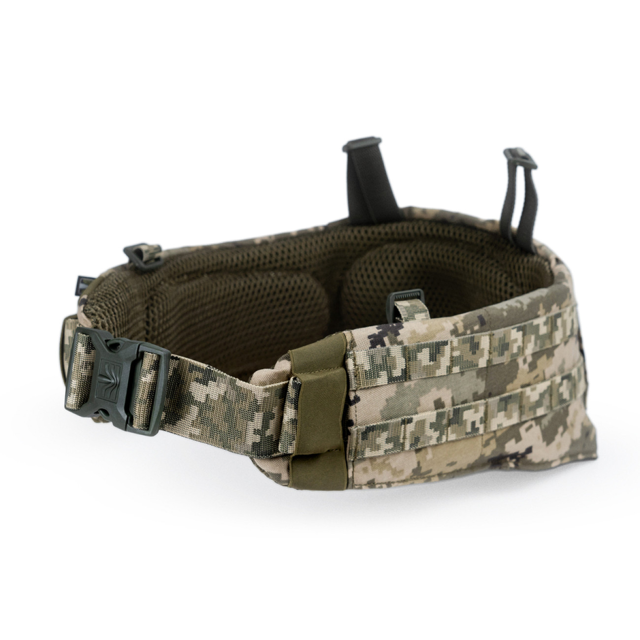 - Конструкция состоит из ремня с фастексом, который протянут сквозь основную платформу. Ремень значительно длиннее платформы, поэтому ее края даже не сходятся вместе. Благодаря этому промежутку боец может свободно наклоняться, приседать, занимать лежачее положение без ощущения скованности.