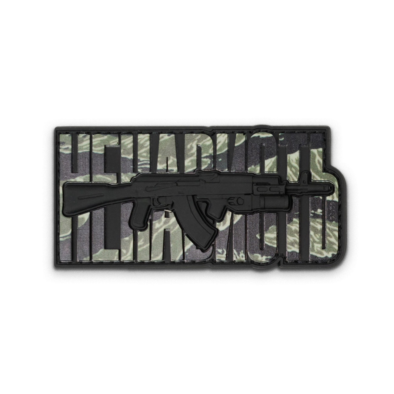 Патч от R3ICH содержит само слово «Ненависть» и изображенный поверх него автомат. Вместе они символизируют единственное уместное чувство, которого заслуживает враг, и потребность отстаивать собственные интересы силой.
