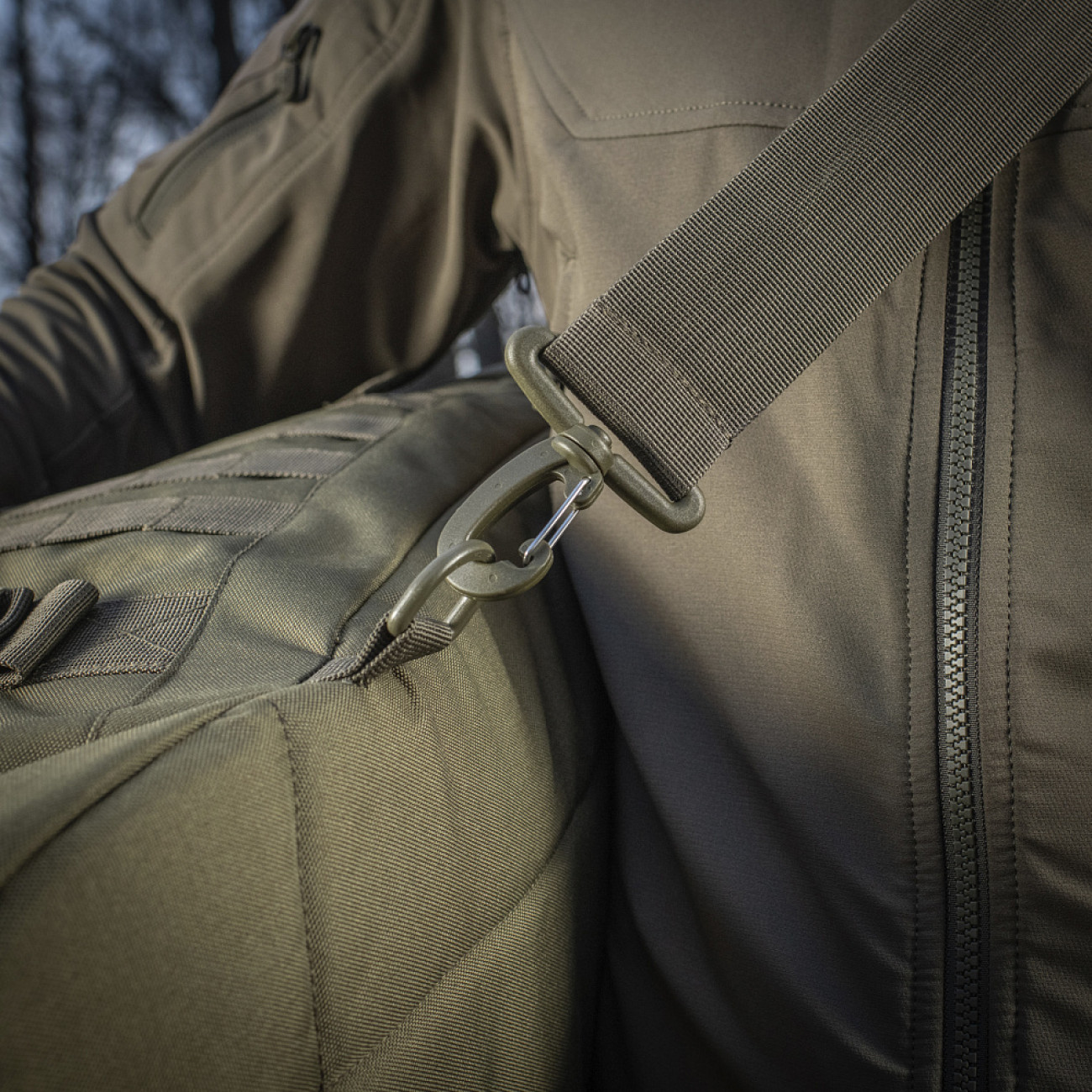 - По бокам и на крышке сумки расположены ячейки молли, которые позволяют устанавливать дополнительные подсумки и снаряжение.